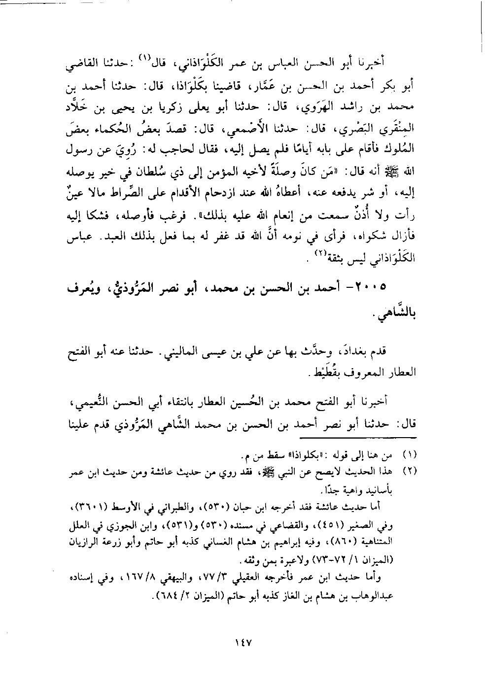 2005 - أَحْمَد بْن الْحَسَن بْن مُحَمَّد أَبُو نصر المروزي ويعرف بالشاهي