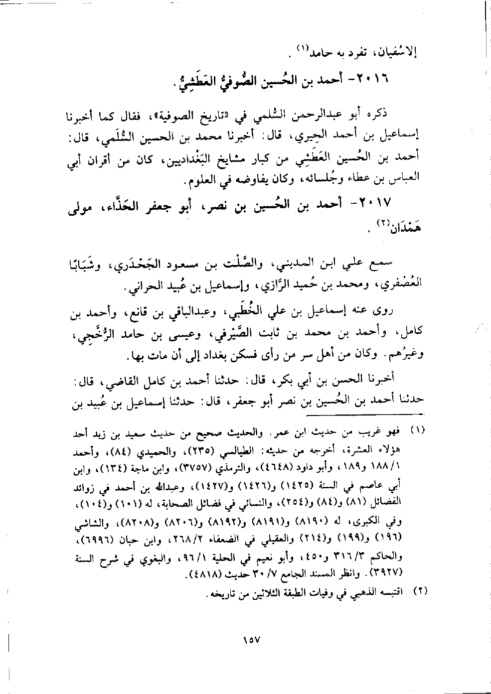 2017 - أَحْمَد بْن الْحُسَيْن بْن نصر أَبُو جعفر الحذاء مولى همدان سمع عَلِيّ ابْن المديني، والصلت بْن مسعود الجحدري، وشبابا العصفري، ومحمد بْن حميد الرَّازِيّ، وإسماعيل بْن عبيد الحراني.