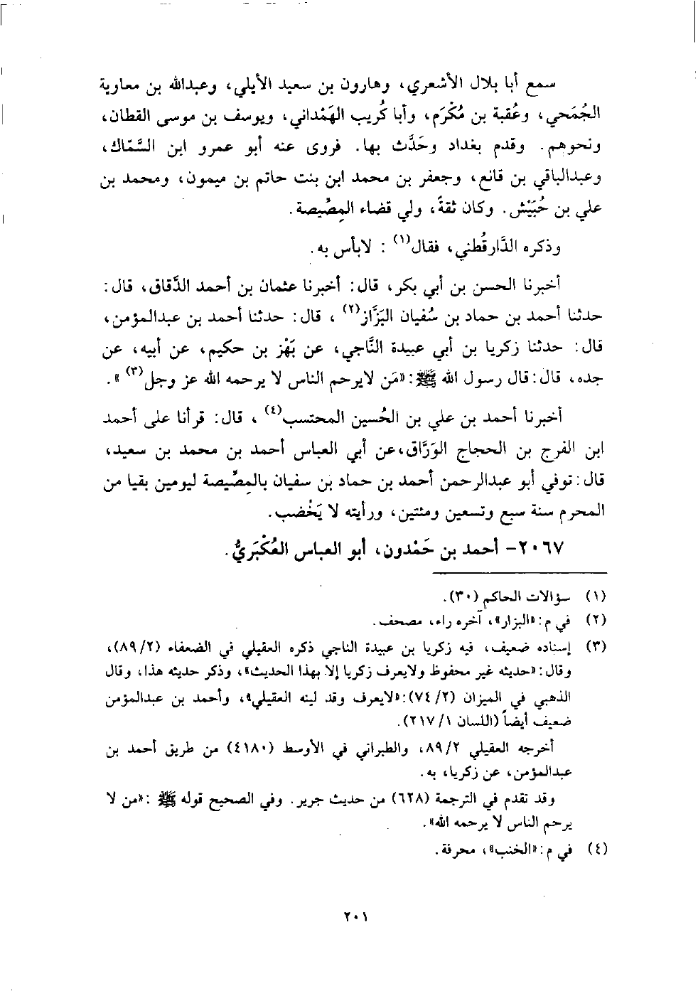 2067 - أَحْمَد بْن حمدون أَبُو الْعَبَّاس العكبري حَدَّثَ عَنْ أَبِي إِبْرَاهِيمَ التَّرْجُمَانِيِّ، رَوَى عَنْهُ: أَبُو بَكْر الإِسْمَاعِيلِيُّ الْجُرْجَانِيُّ.