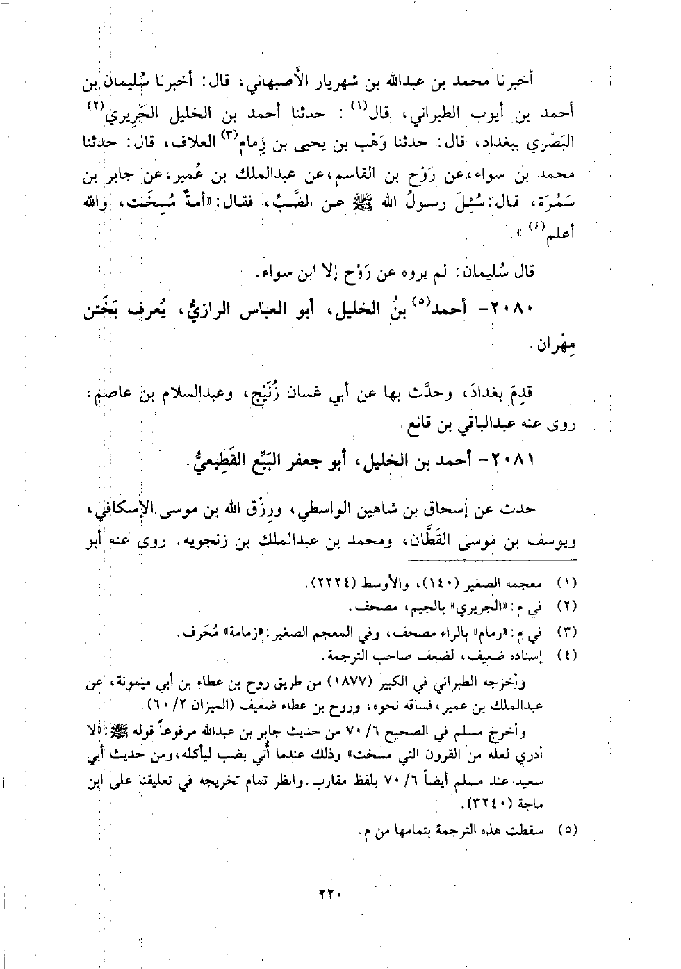 2080 - أَحْمَد بْن الخليل أَبُو الْعَبَّاس الرَّازِيّ يعرف بختن مهران قدم بغداد، وَحَدَّثَ بها عَنْ أَبِي غسان زنيج، وعبد السلام بْن عَاصِم، رَوَى عَنْهُ: عبد الباقي بْن قانع.