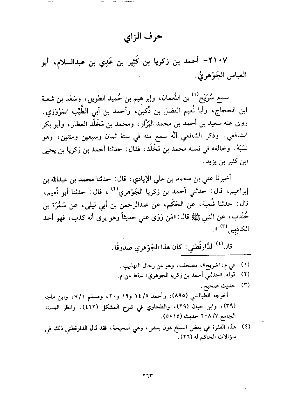 2107 - أَحْمَد بْن زكريا بْن كثير بْن عدي بْن عَبْد السلام أَبُو الْعَبَّاس الجوهري