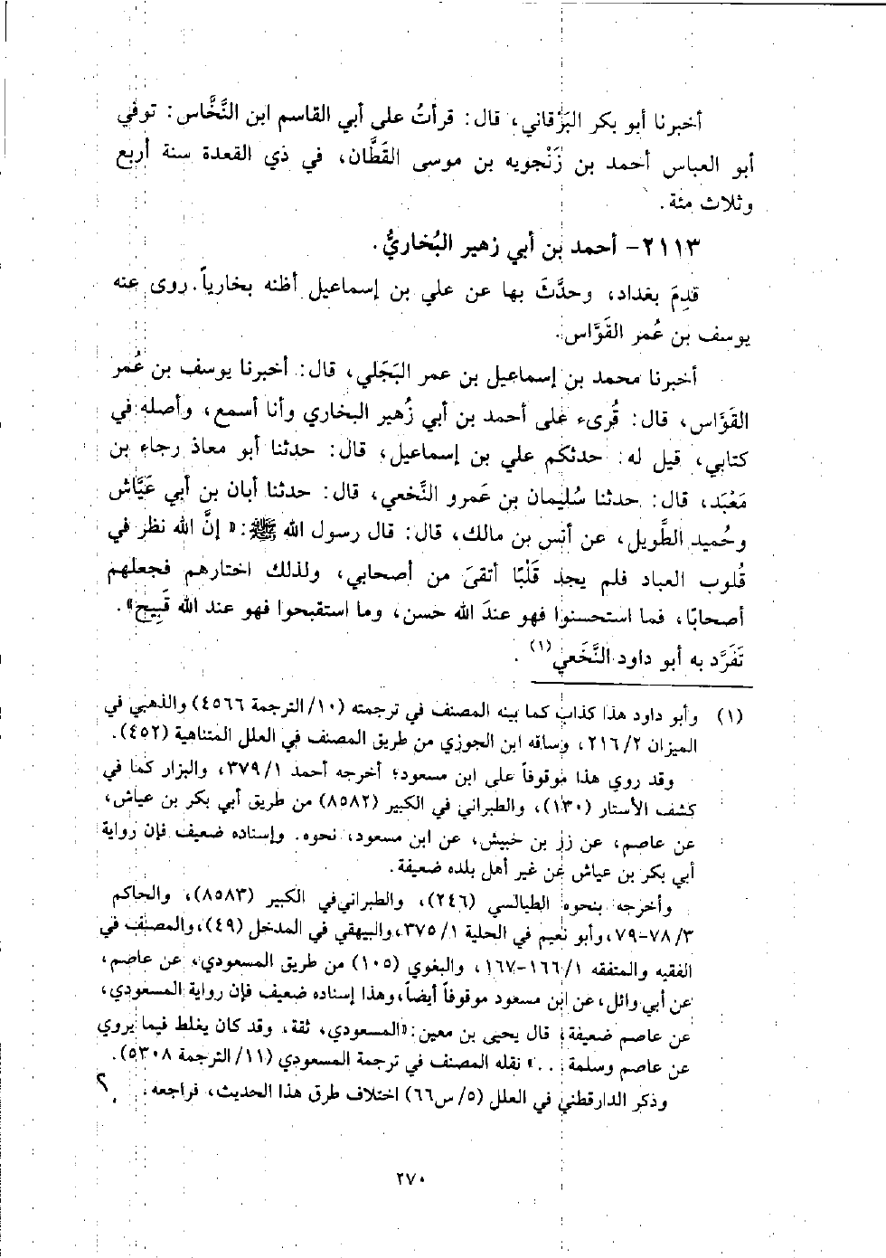 2113 - أَحْمَد بْن أَبِي زهير البخاري قدم بغداد، وَحَدَّثَ بها عَنْ عَلِيِّ بْن إِسْمَاعِيل أظنه بخاريا، رَوَى عَنْهُ: يوسف بْن عُمَر القواس.