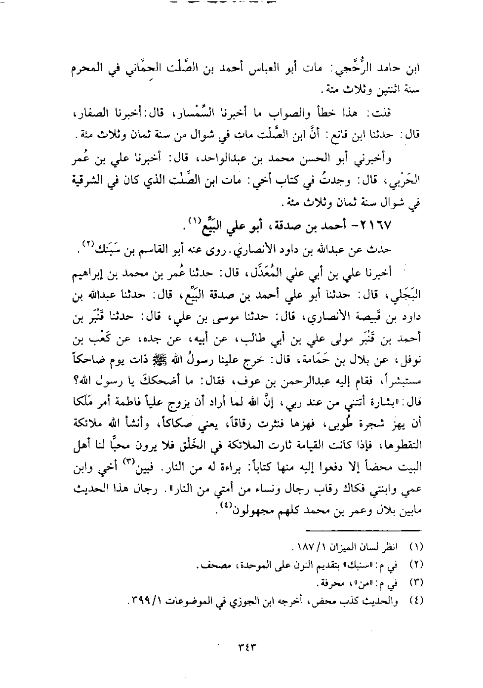 2167 - أَحْمَد بْن صدقة أَبُو عَلِيٍّ البيع حدث عَنْ عَبْد اللَّه بْن دَاوُد الأَنْصَارِيّ، رَوَى عَنْهُ أَبُو الْقَاسِم بْن سَبَنك.