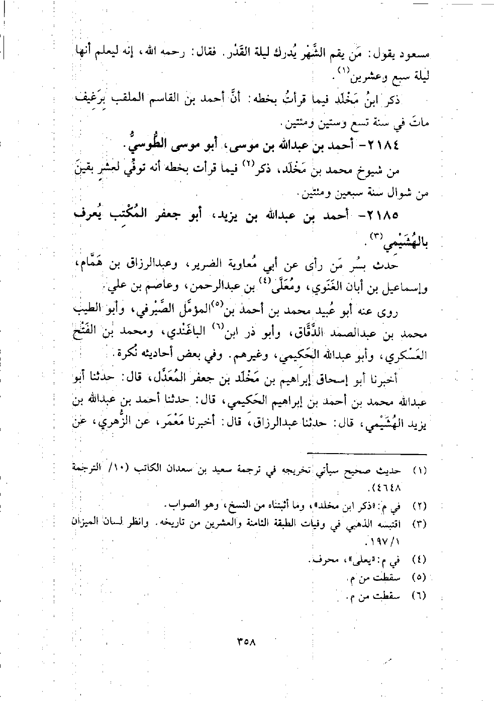 2184 - أَحْمَد بْن عَبْد اللَّه بْن مُوسَى أَبُو مُوسَى الطوسي من شيوخ مُحَمَّد بْن مَخْلَد، ذكر فيما قرأت بخطه أنه توفي لعشر بقين من شوال سنة سبعين ومائتين.