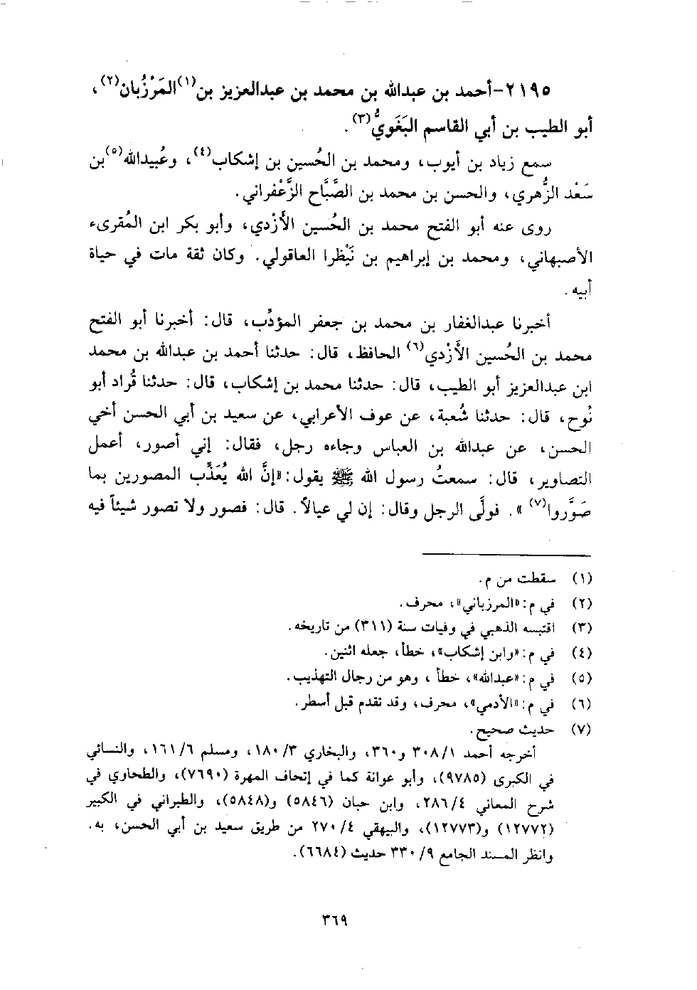 2195 - أَحْمَد بْن عَبْد اللَّه بْن مُحَمَّد بْن عَبْد العزيز بن المرزبان أَبُو الطَّيِّب بْن أَبِي الْقَاسِم البغوي