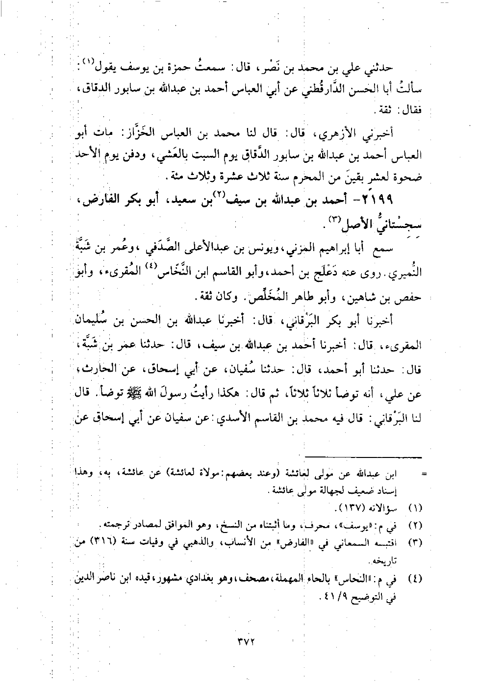 2199 - أَحْمَد بْن عَبْد اللَّه بْن سَيف بْن سعيد أَبُو بَكْر الفارض سجستاني الأصل