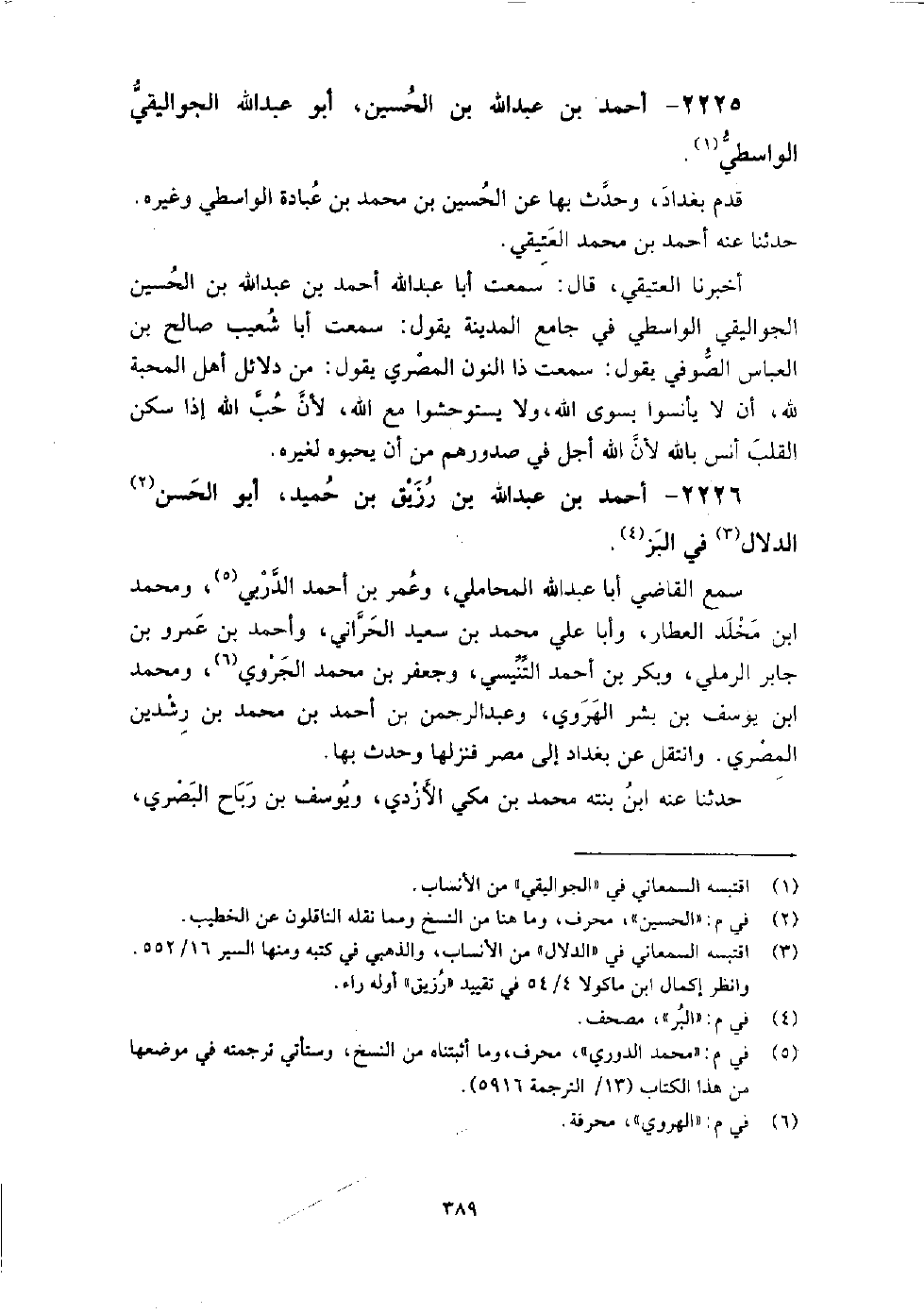 2225 - أَحْمَد بْن عَبْد اللَّه بْن الْحُسَيْن أَبُو عَبْد اللَّه الجواليقي الواسطي قدم بغداد، وَحَدَّثَ بها عَنِ الْحُسَيْن بْن مُحَمَّد بْن عبادة الواسطي، وغيره.