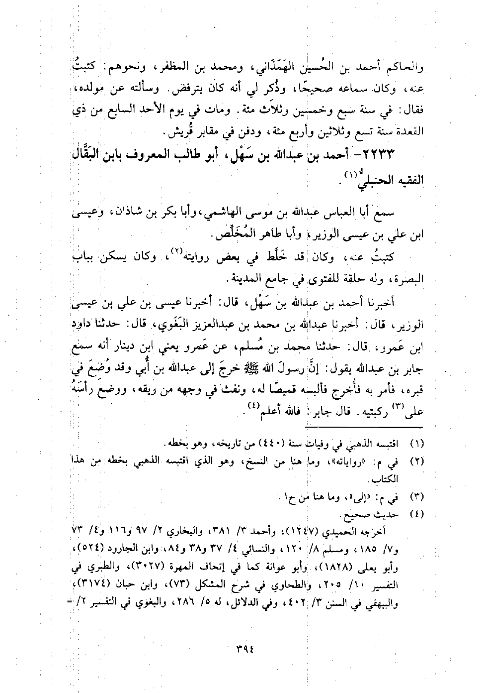 2233 - أَحْمَد بْن عَبْد اللَّه بْن سهل أَبُو طالب الْمَعْرُوف بابن البقال الْفَقِيه الحنبلي