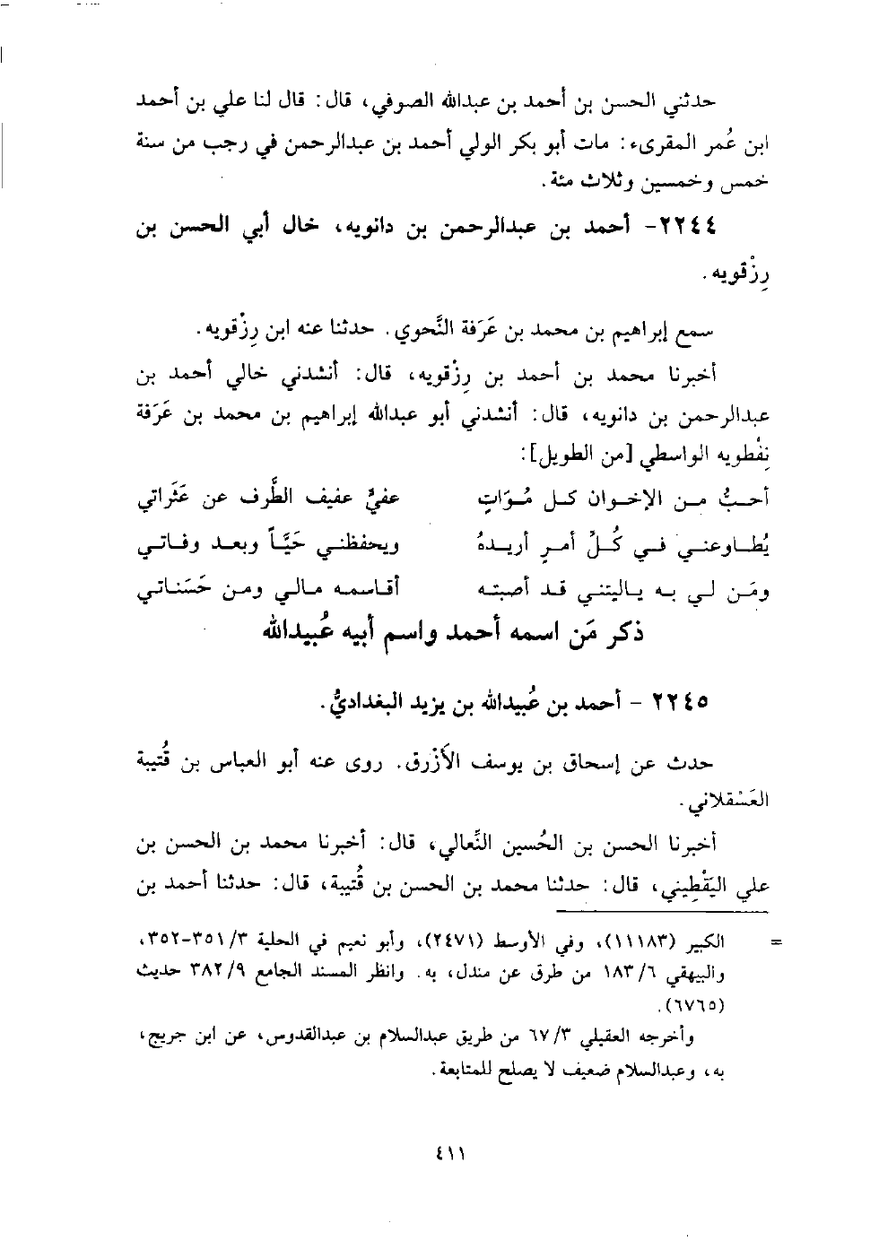 2245 - أَحْمَد بْن عُبَيْد اللَّهِ بْن يَزِيد البغدادي حدث عَنْ إِسْحَاق بْن يوسف الأزرق، رَوَى عَنْهُ: أَبُو الْعَبَّاس بْن قتيبة العسقلاني.