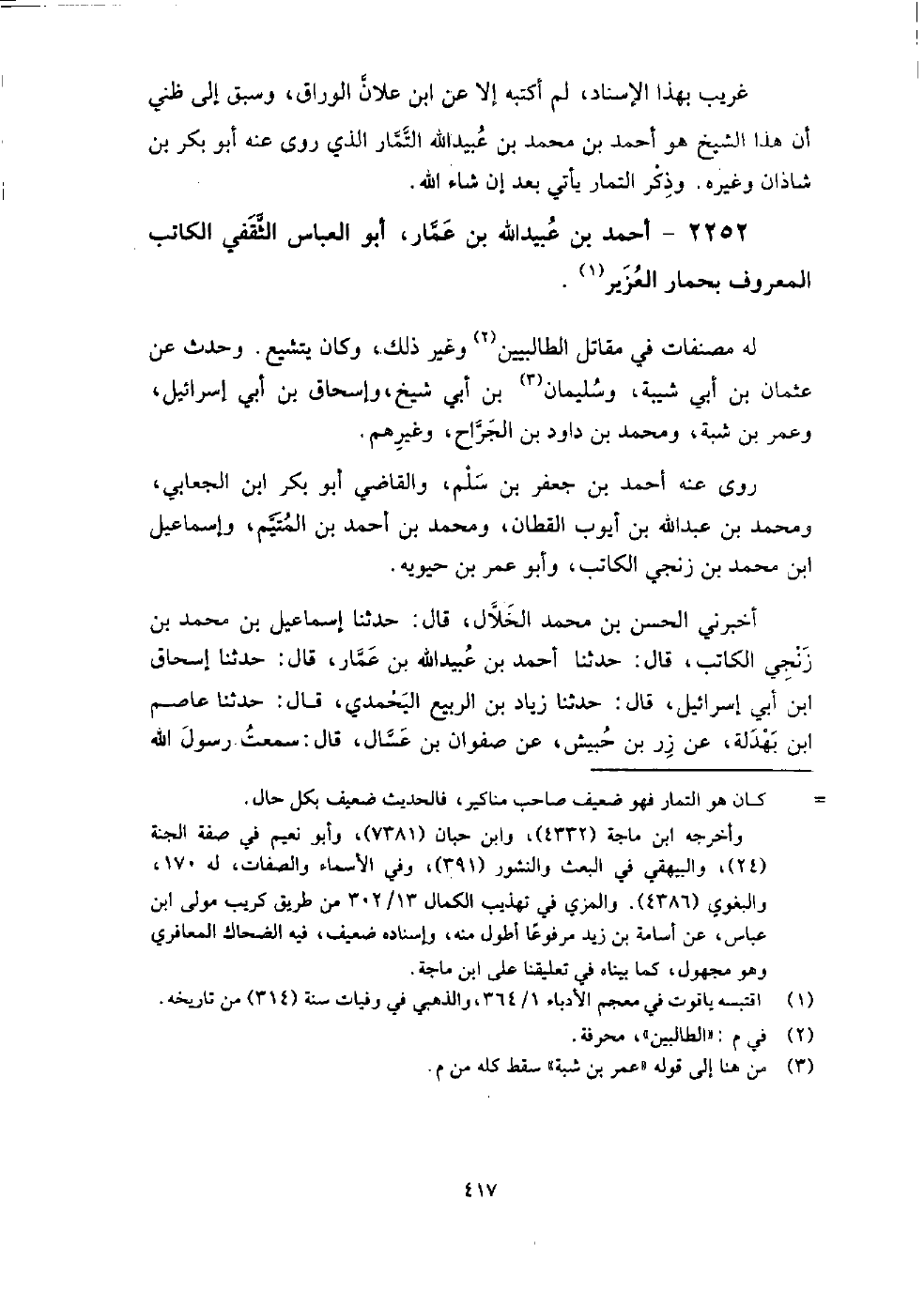 2252 - أَحْمَد بْن عُبَيْد اللَّهِ بْن عمار أَبُو الْعَبَّاس الثقفي الكاتب الْمَعْرُوف بحمار العُزَير
