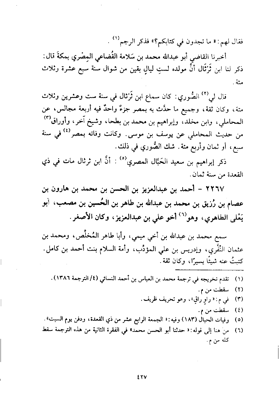 2267 - أَحْمَد بْن عَبْد العزيز بْن الْحَسَن بْن مُحَمَّد بْن هارون بْن عصام بْن رزيق بْن مُحَمَّد بْن عَبْد اللَّه بْن طَاهِر بْن الْحُسَيْن بْن مصعب أَبُو يعلى الطاهري وهو أخو عَلِيّ بْن عَبْد العزيز وَكَانَ الأصغر،