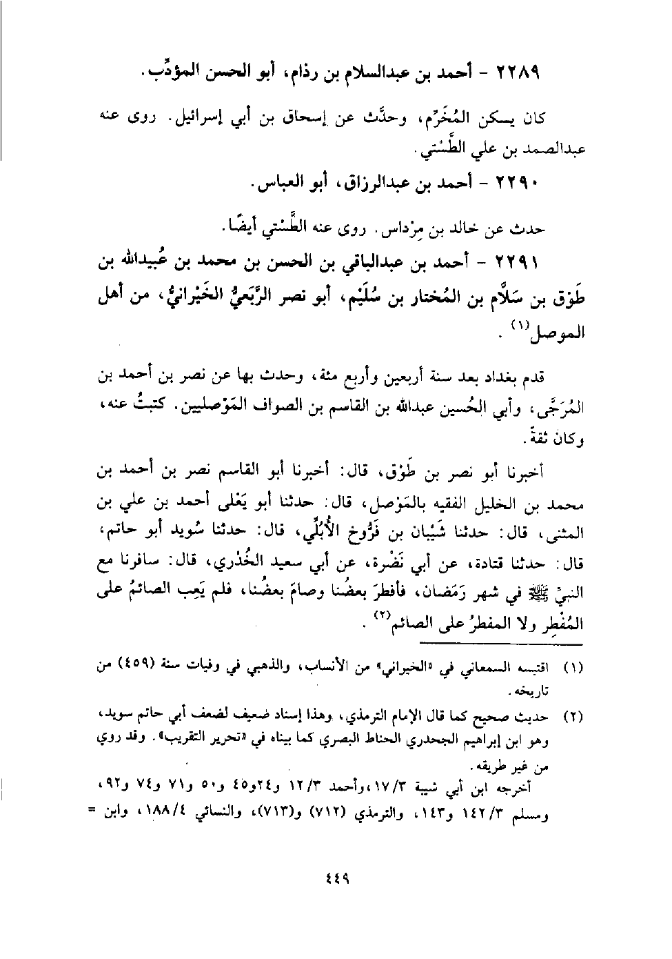2289 - أَحْمَد بْن عَبْد السلام بْن رذام أَبُو الْحَسَن المؤدب كَانَ يسكن المخرم، وَحَدَّثَ عَنْ إِسْحَاق بْن أَبِي إسرائيل.