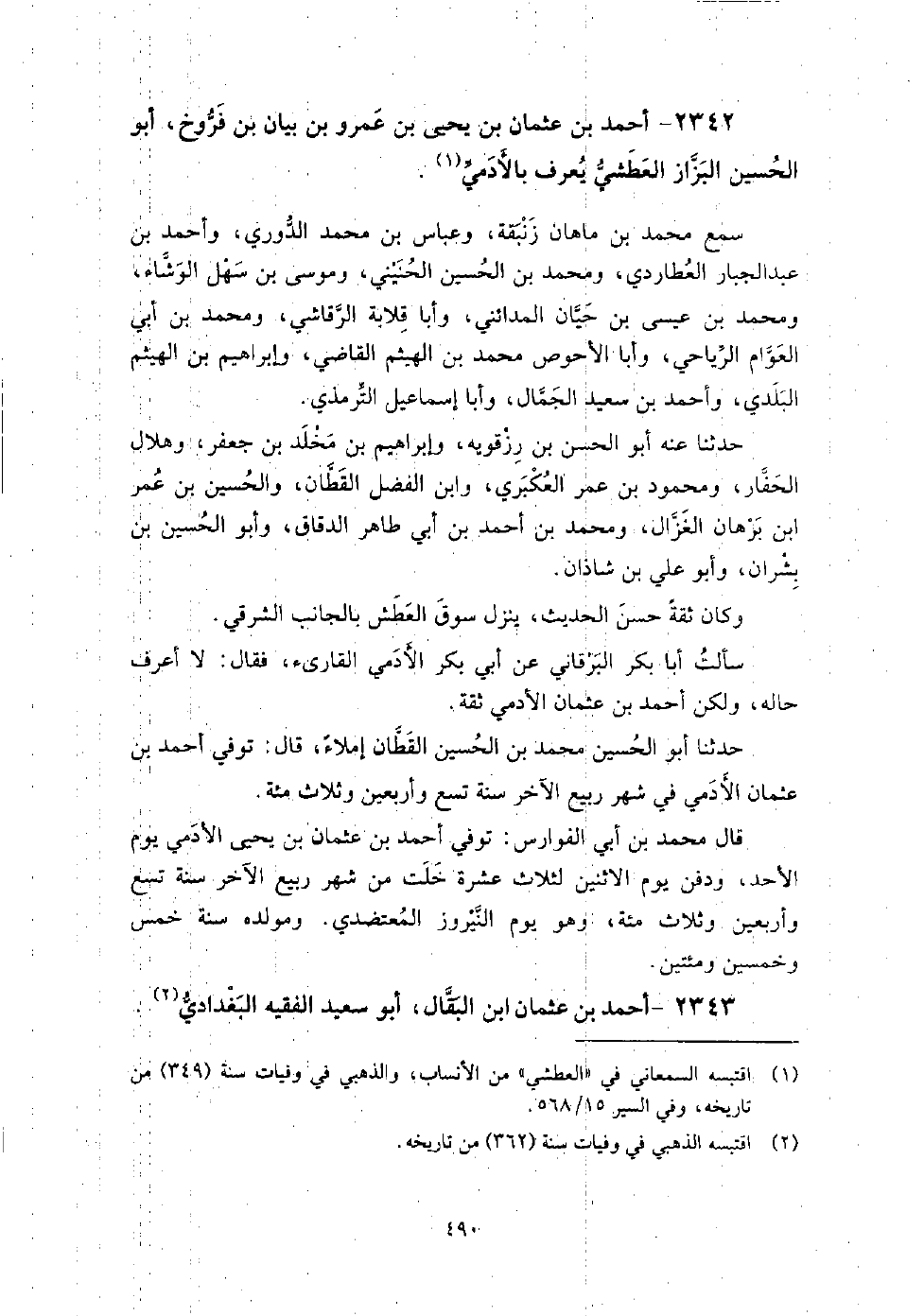 2342 - أَحْمَد بْن عُثْمَان بْن يَحْيَى بْن عمرو بْن بيان بْن فروخ أَبُو الْحُسَيْن البزاز العطشي يعرف بالآدمي