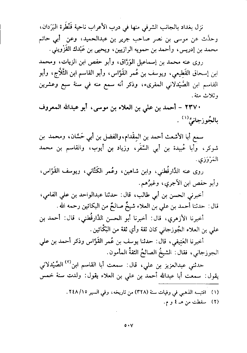 2370 - أَحْمَد بْن عَلِيّ بْن العلاء بْن مُوسَى، أَبُو عَبْد اللَّه الْمَعْرُوف بالجوزجاني