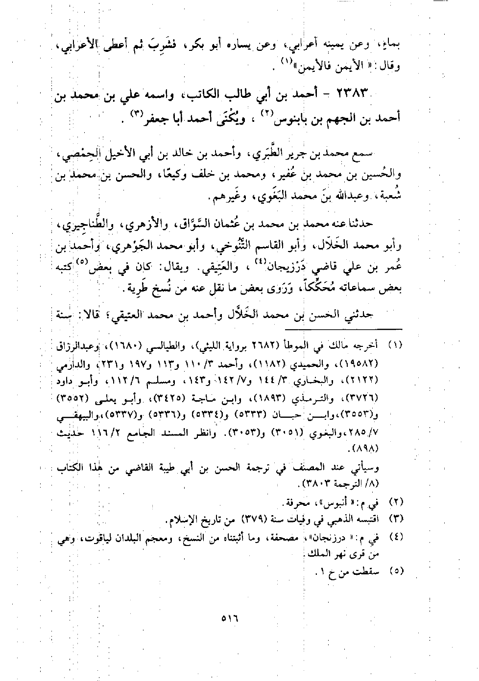 2383 - أَحْمَد بْن أَبِي طالب الكاتب واسمه عَلِيّ بْن مُحَمَّد بْن أَحْمَدَ بْن الجهم بْن بابنوس ويكنى أَحْمَد أَبَا جعفر