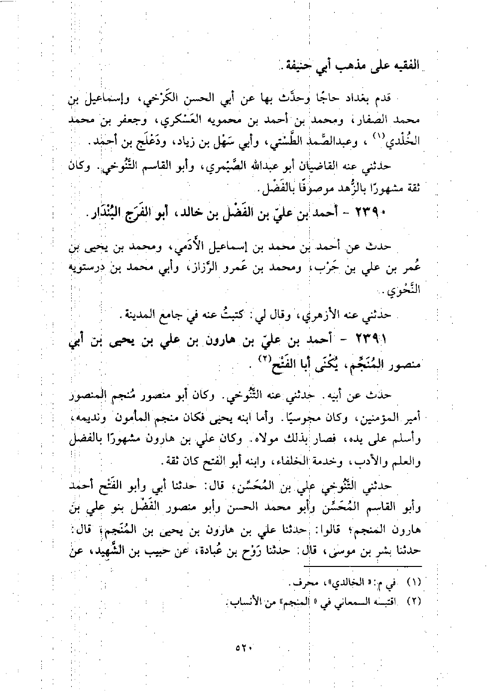2391 - أَحْمَد بْن عَلِيّ بْن هارون بْن عَلِيّ بْن يَحْيَى بْن أَبِي مَنْصُور المنجم يكنى أَبَا الفتح