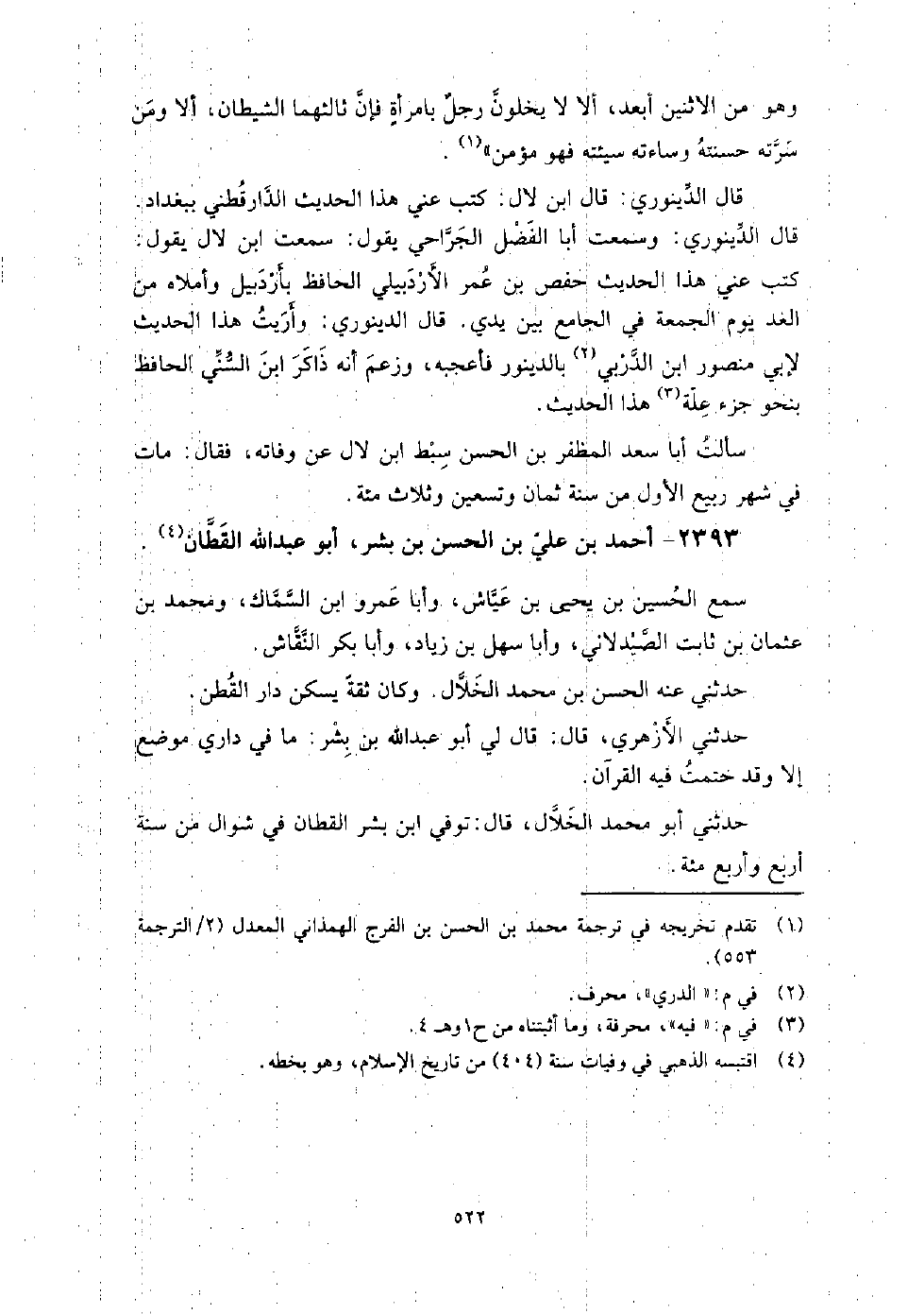 2393 - أَحْمَد بْن عَلِيّ بْن الْحَسَن بْن بشر أَبُو عَبْد اللَّه القطان سمع الْحُسَيْن بْن يَحْيَى بْن عياش، وَأَبَا عمرو ابْن السماك، ومحمد بْن عُثْمَان بْن ثابت الصيدلاني، وَأَبَا سهل بْن زياد، وَأَبَا بَكْر النقاش.