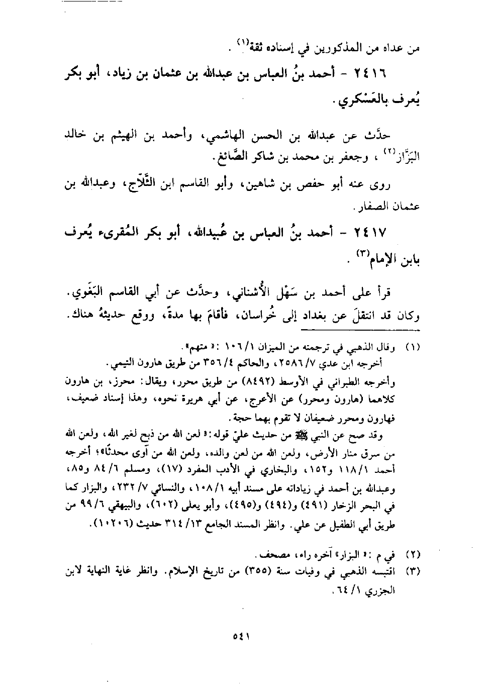 2416 - أَحْمَد بْن الْعَبَّاس بْن عَبْد اللَّه بْن عُثْمَان بْن زياد أَبُو بَكْر يعرف بالعسكري