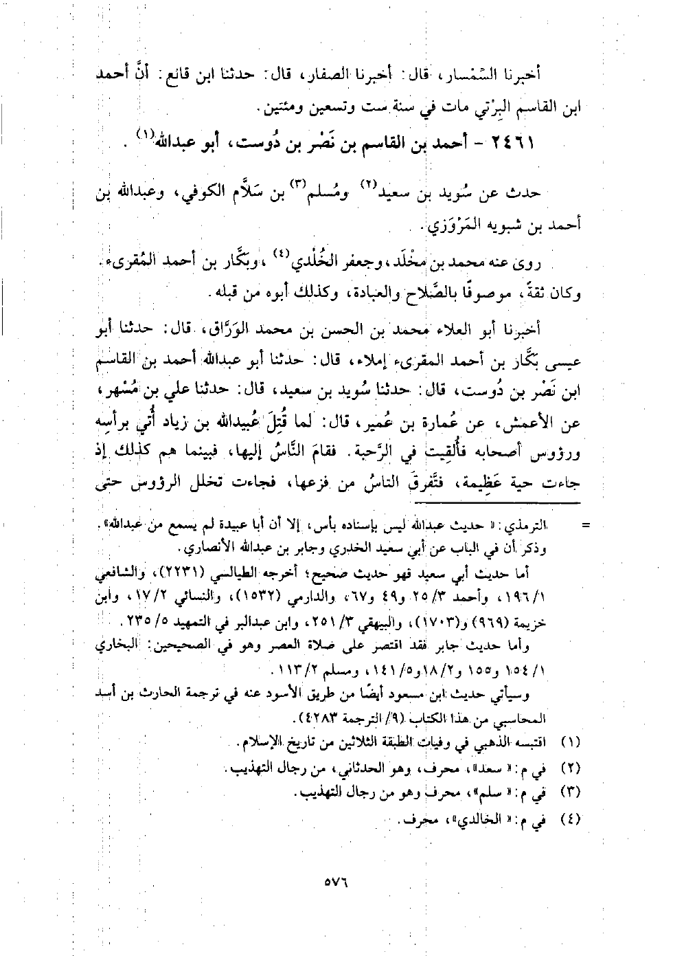 2461 - أَحْمَد بْن الْقَاسِم بْن نصر بْن دوست أَبُو عَبْد اللَّه حدث عَنْ: سويد بْن سعيد، ومسلم بْن سلام الْكُوفِيّ، وعبد الله بن أحمد بن شبوية المروزي.