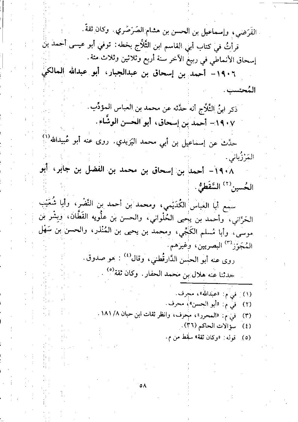 1906 - أَحْمَد بْن إِسْحَاق بْن عَبْد الجبار أَبُو عَبْد اللَّه المالكي المحتسب ذكر ابن الثلاج أنه حدثه عَنْ مُحَمَّد بْن الْعَبَّاس المؤدب.