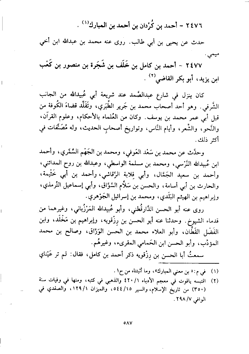 2477 - أَحْمَد بْن كامل بْن خَلَفِ بْنِ شجرة بْن مَنْصُور بْن كعب بْن يَزِيد أَبُو بَكْر الْقَاضِي