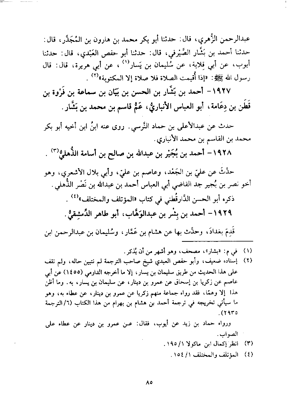 1929 - أَحْمَد بْن بشر بْن عَبْد الْوَهَّاب أَبُو طَاهِر الدِّمَشْقِيّ قدم بغداد، وَحَدَّثَ بها عَنْ هشام بْن عمار، وسليمان بْن عَبْد الرَّحْمَن ابْن بنت شرحبيل، وعبد الرَّحْمَن بْن إِبْرَاهِيم دُحيم، وأبي نعيم الضبي، وأحمد بْن عمرو بْن السرح، ومحمد بْن صدقة الجبلاني، وغيرهم.