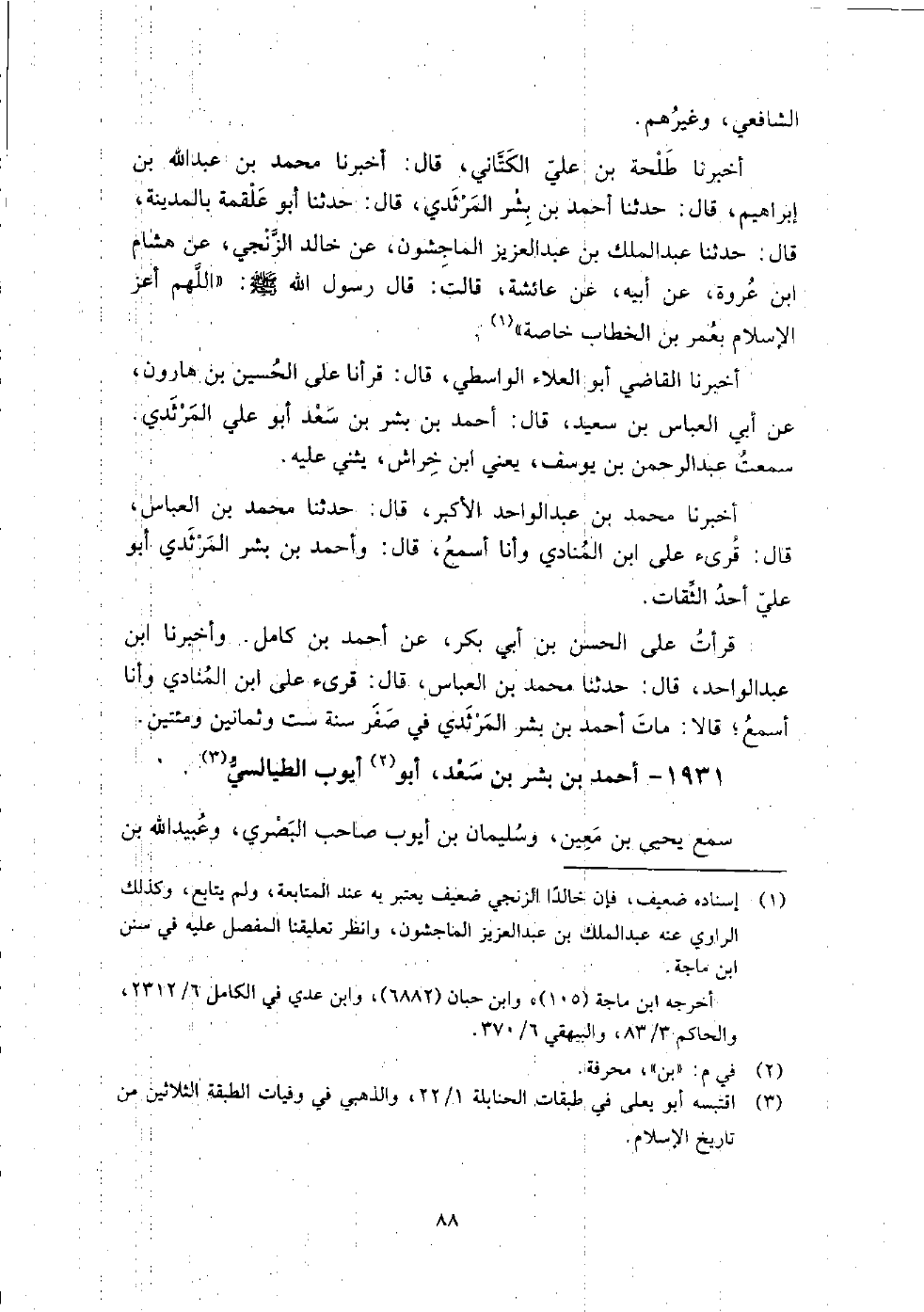 1931 - أَحْمَد بْن بشر بْن سعد أبو أَيُّوب الطيالسي سمع يَحْيَى بْن معين، وسليمان بْن أَيُّوب صاحب البصري، وعُبَيْد اللَّهِ بْن معاذ العنبري، وعبد الصمد بن يزيد مردويه، ونوح بن حبيب القومسي.