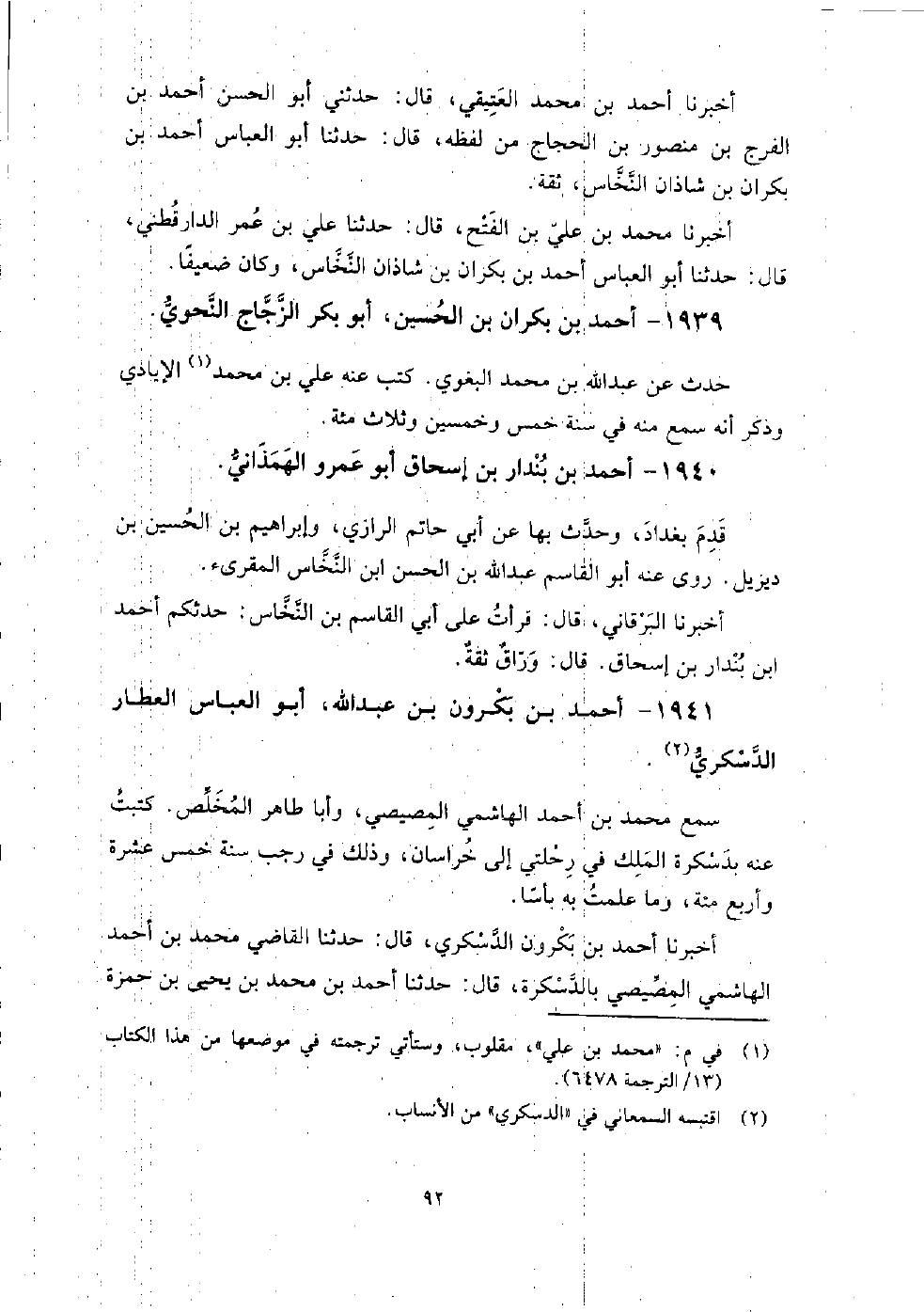 1939 - أَحْمَد بْن بكران بْن الْحُسَيْن أَبُو بَكْر الزجاج النحوي حدث عَنْ عَبْد اللَّه بْن مُحَمَّد البغوي، كتب عَنْهُ علي بن مُحَمَّد الأيادي، وذكر أنه سمع منه فِي سنة خمس وثلاث مائة.