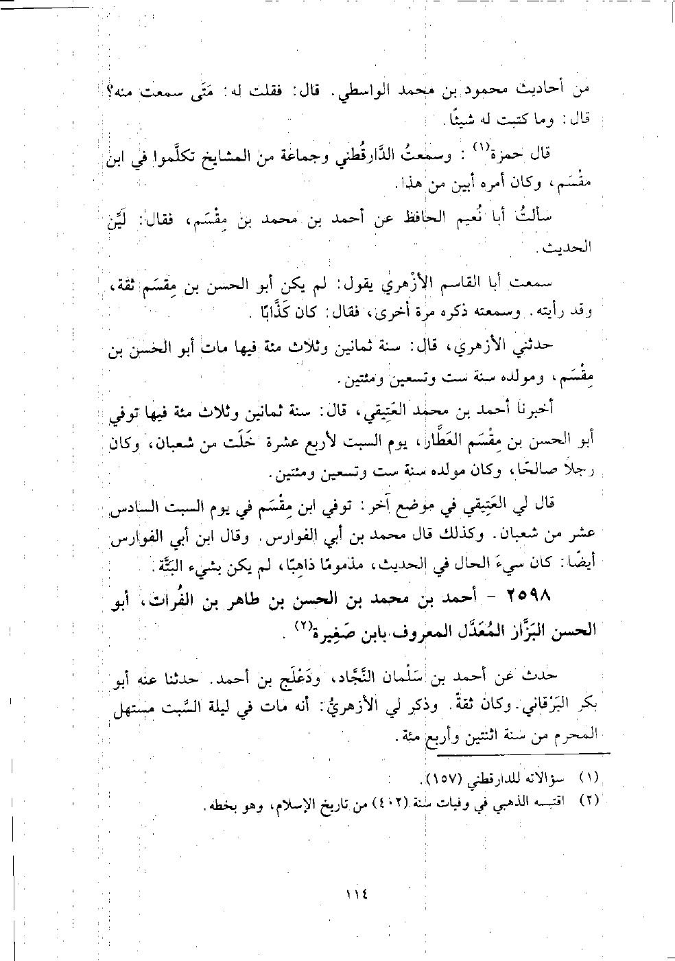 2598 - أحمد بن محمد بن الحسن بن طاهر بن الفرات، أبو الحسن البزاز المعدل المعروف بابن صغيرة