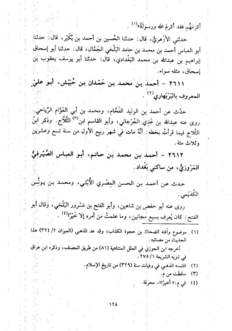 2611 - أَحْمَد بْن مُحَمَّد بْن حمدان بْن حبيش أَبُو علي المعروف بالبربهاري