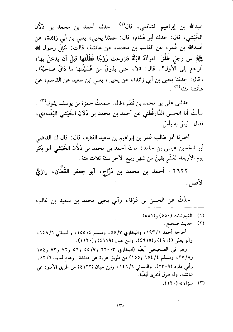 2622 - أَحْمَد بْن مُحَمَّد بْن دراج أَبُو جعفر القطان رازي الأصل، حدث عَنِ الحسن بْن عرفة، وأبي يَحْيَى مُحَمَّد بْن سعيد بْن غالب الضرير العطار، روى عنه أبو حفص بن شاهين، وعبد الله بن أحمد بن عبد الله التمار.
