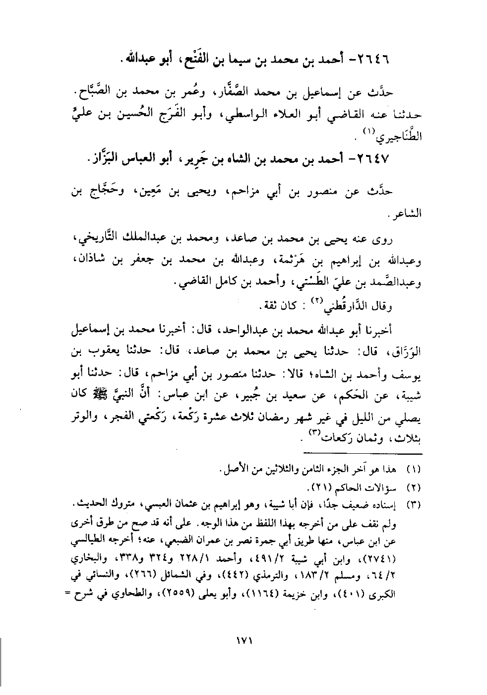 2647 - أَحْمَد بْن مُحَمَّد بْن الشاه بْن جرير أَبُو العباس البزاز حدث عَن منصور بْن أَبِي مزاحم، ويحيى بْن معين، وحجاج بْن الشاعر.
