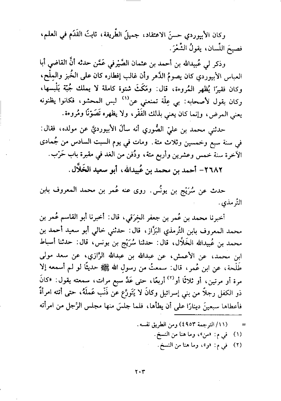 2682 - أَحْمَد بْن مُحَمَّد بْن عبيد اللَّه أَبُو سعيد الخلال حدث عَن سريج بْن يونس، روى عنه: عُمَر بْن مُحَمَّد المعروف بابن الترمذي.