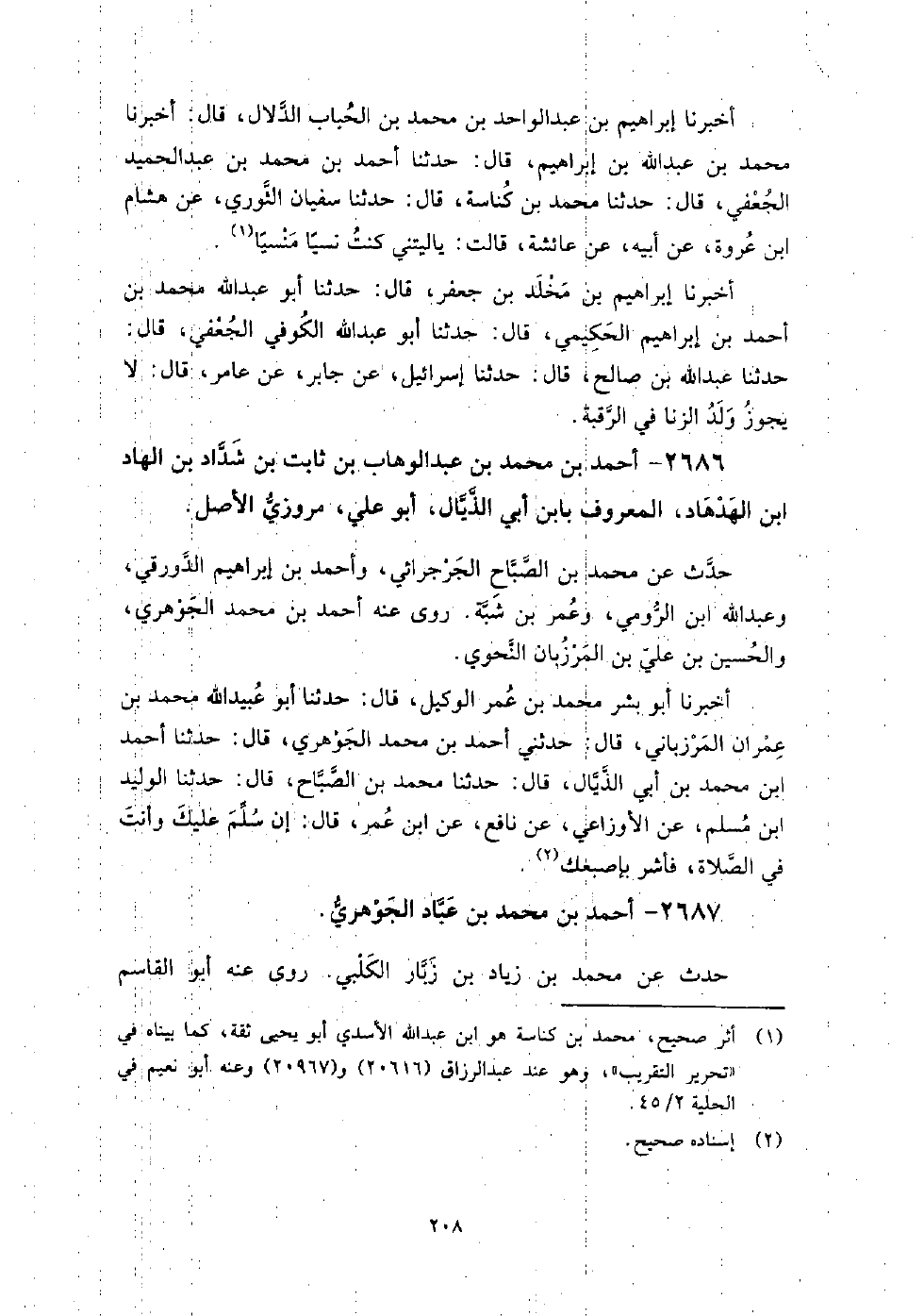 2687 - أَحْمَد بْن مُحَمَّد بْن عباد الجوهري حدث عَن مُحَمَّد بْن زياد بْن زبار الكلبي، روى عنه: أَبُو الْقَاسِم الطبراني.