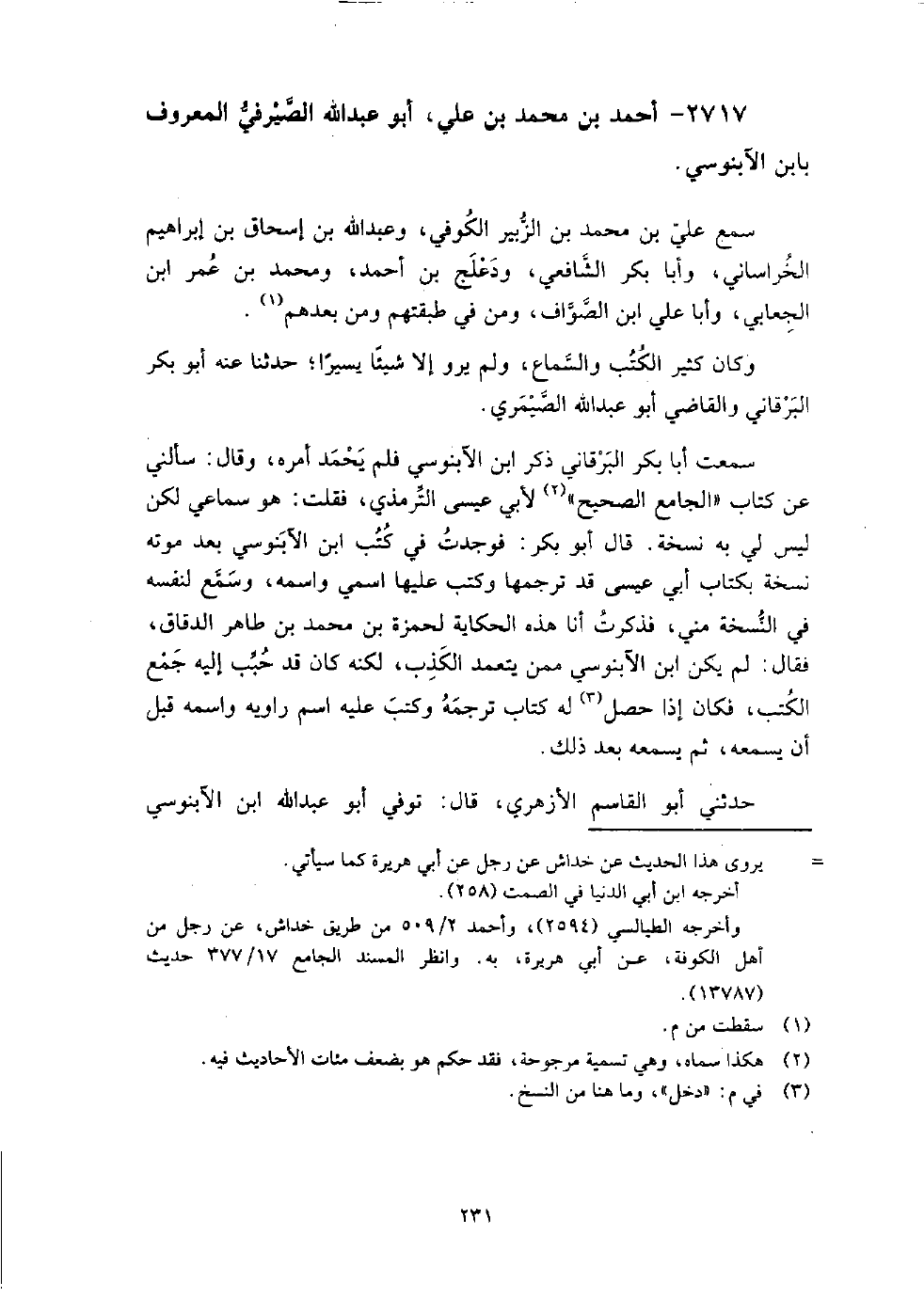 2717 - أَحْمَد بْن مُحَمَّد بْن عَلِيّ، أَبُو عَبْد اللَّهِ الصيرفِي المعروف بابن الآبنوسي