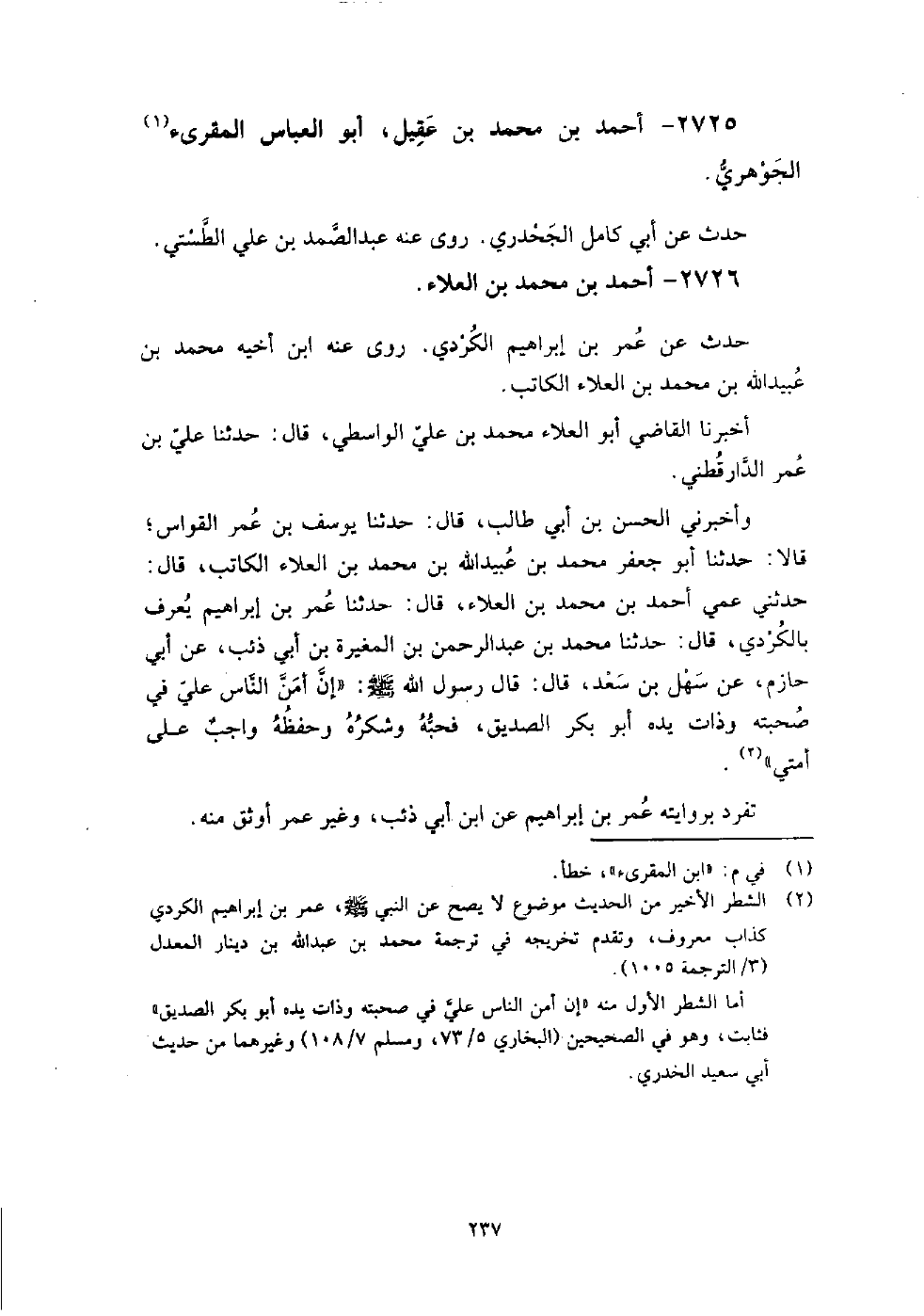 2725 - أَحْمَد بْن مُحَمَّد بْن عقيل أَبُو الْعَبَّاس المقرئ الجواهري حدث عَن أَبِي كامل الجحدري، روى عنه عَبْد الصمد بْن عَلِيّ الطستي.