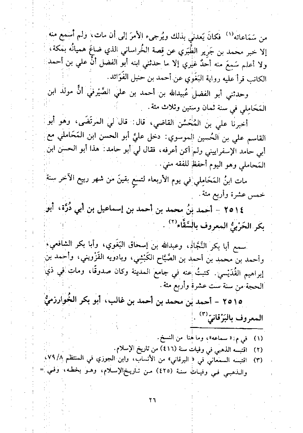 2515 - أَحْمَد بْن مُحَمَّد بْن أَحْمَد بْن غالب أَبُو بَكْر الخوارزمي المعروف بالبرقاني سمع ببلده من أَبِي العباس بْن حمدان النيسابوري، ومحمد بْن علي الحساني، وأَحْمَد بْن إبراهيم بْن حباب الخوارزميين.