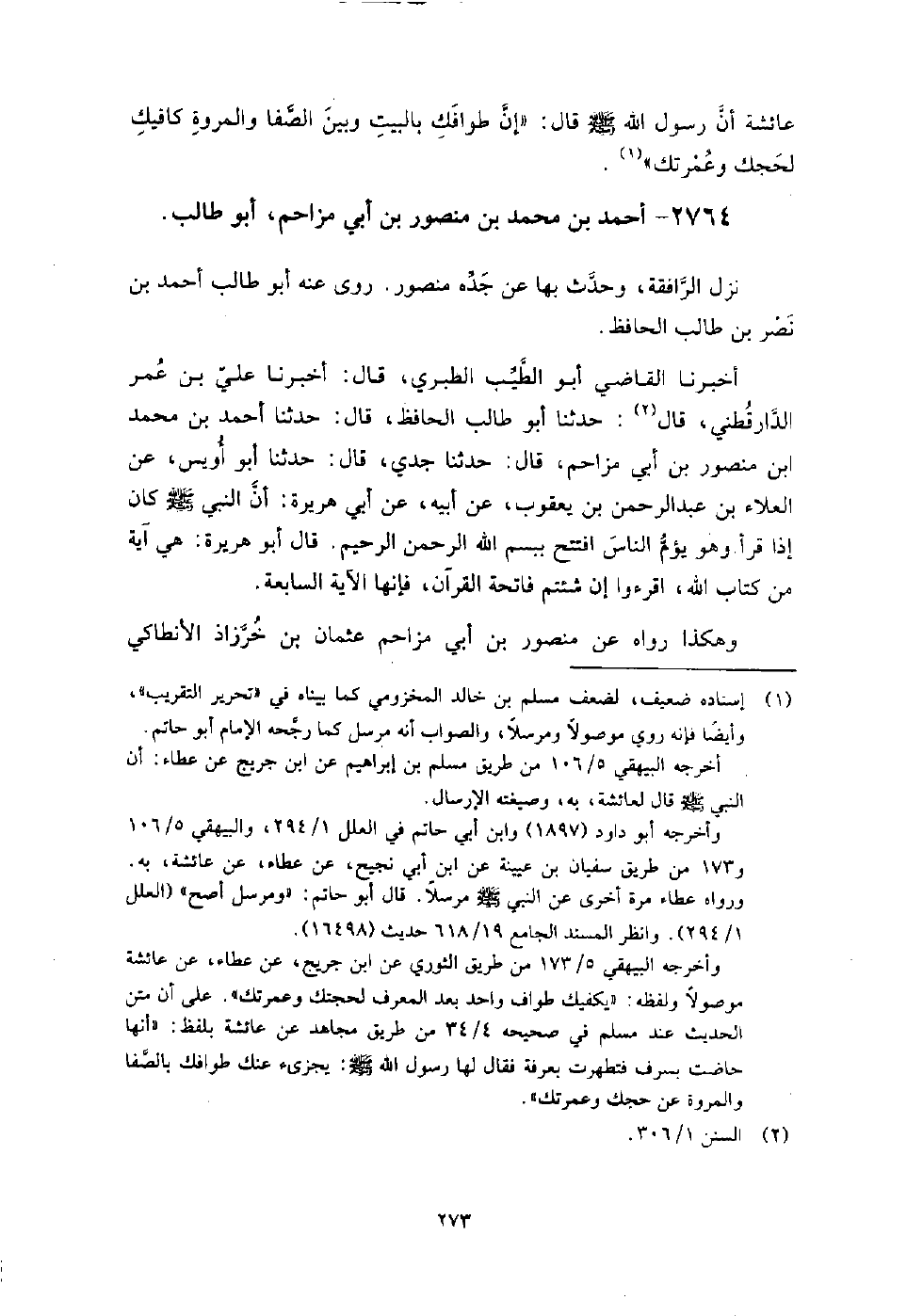 قَالَ أَبُو هُرَيْرَةَ: هِيَ آيَةٌ مِنْ كِتَابِ اللَّهِ، اقْرَءُوا إِنْ شِئْتُمْ فَاتِحَةَ الْقُرْآنِ، فَإِنَّهَا الآيَةُ السَّابِعَةُ هكذا رواه عَن منصور بْن أَبِي مزاحم عثمان بْن خرزاذ الأنطاكي، وَالحسن بْن الفضل بْن السمح البوصرائي.