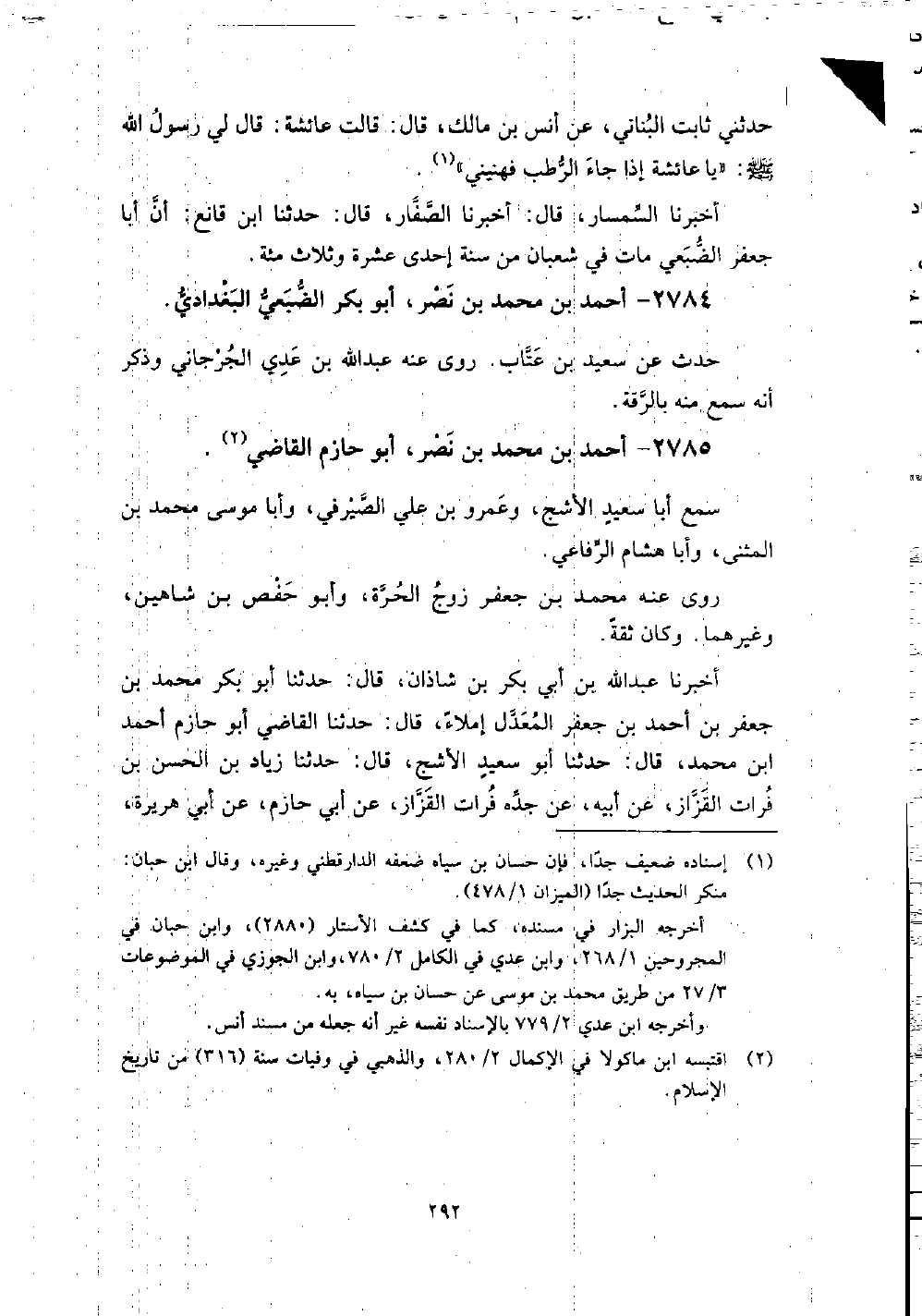 2785 - أَحْمَد بْن مُحَمَّد بْن نصر أَبُو حازم الْقَاضِي سمع أبا سَعِيد الأشج، وعمرو بْن عَلِيّ الصيرفِي، وأبا مُوسَى مُحَمَّد بْن المثنى، وأبا هِشَام الرفاعي.
