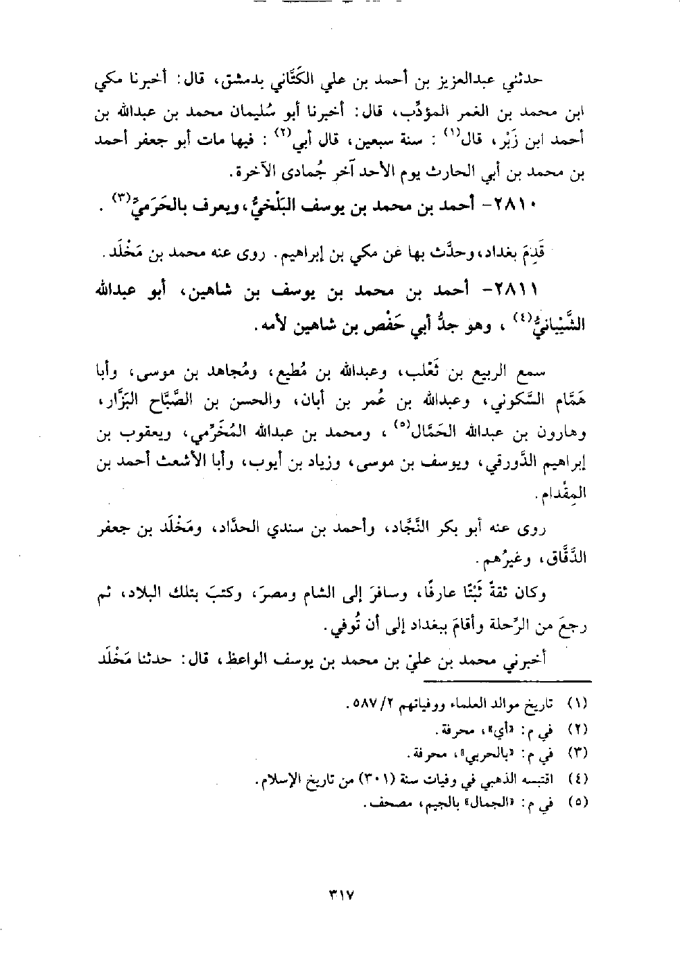 2810 - أَحْمَد بْن مُحَمَّد بْن يُوسُف البلخي، ويعرف بالحرمي قدم بغداد، وحدث بِهَا عَن مكي بْن إِبْرَاهِيم، روى عنه: مُحَمَّد بْن مخلد.