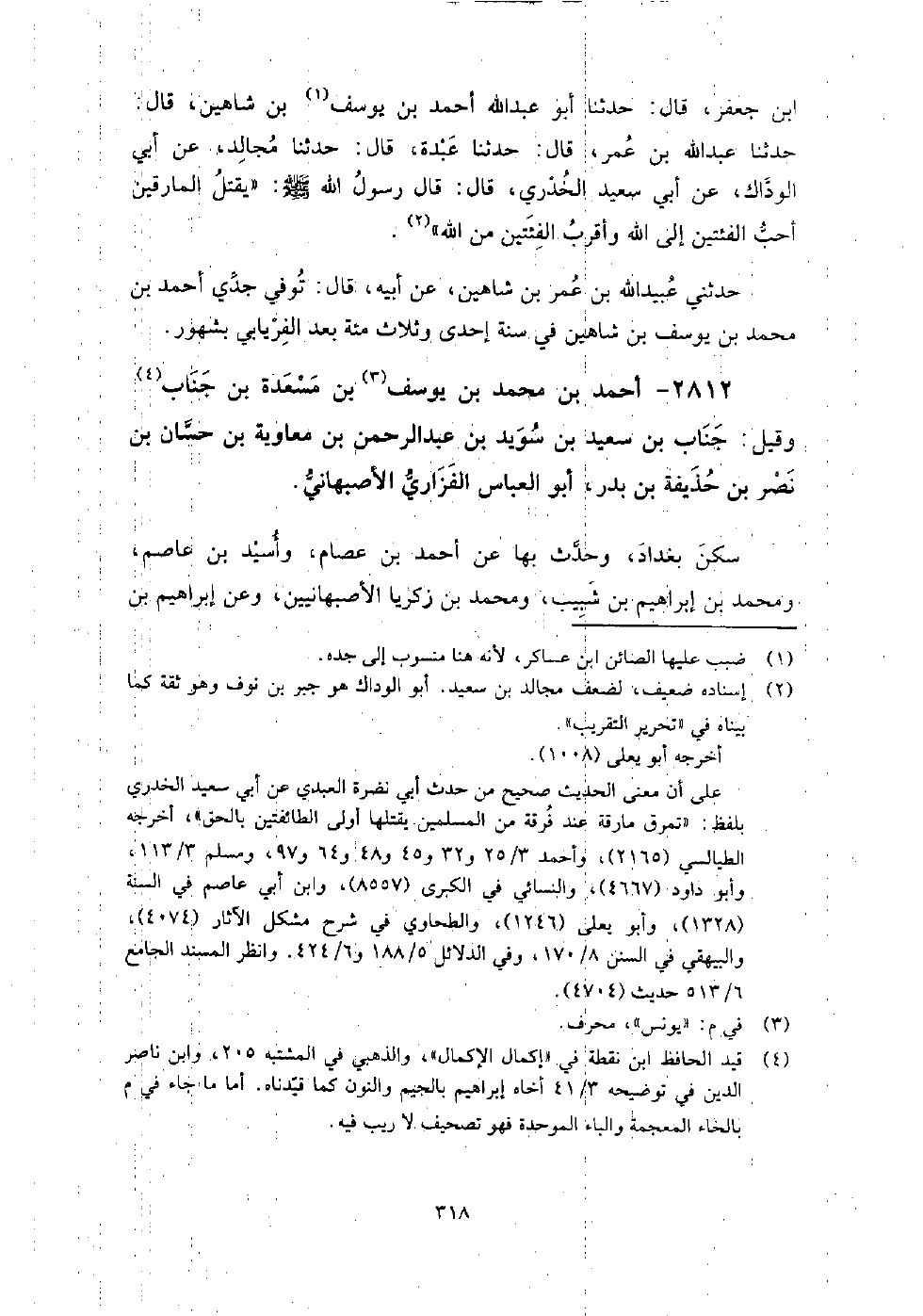 2812 - أَحْمَد بْن مُحَمَّد بْن يوسف بْن مسعدة بْن جناب، وقيل جناب بْن سَعِيد بْن سويد بْن عَبْد الرحمن بْن معاوية بْن حسان بْن نصر بْن حذيفة بن بدر أَبُو الْعَبَّاس الفزاري الأصبِهَاني
