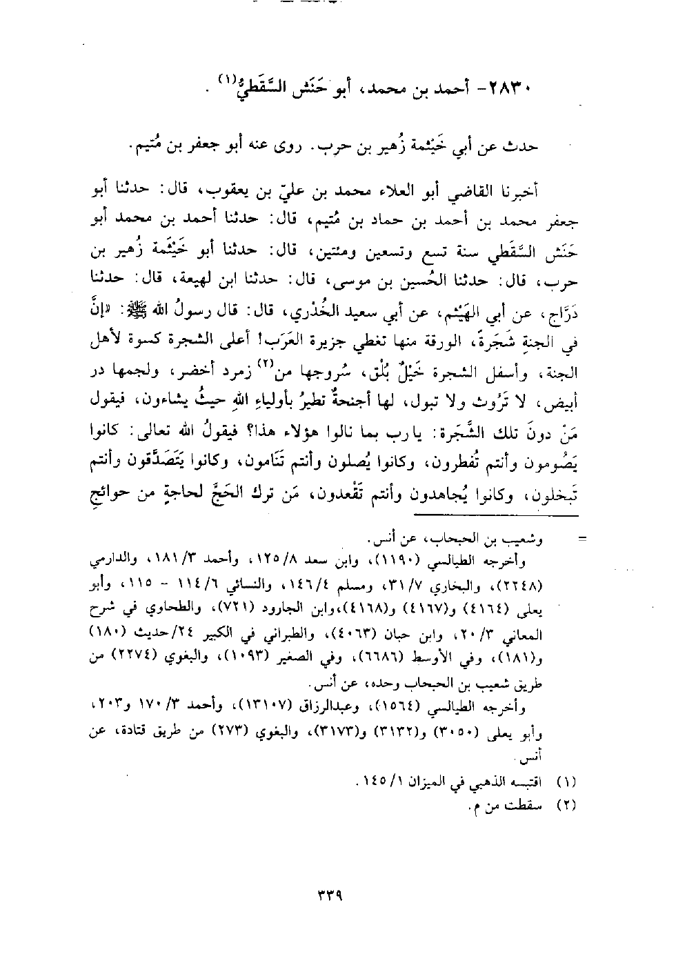 2830 - أَحْمَد بْن مُحَمَّد أَبُو حنش السقطي حدث عَن أَبِي خيثمة زهير بْن حرب، روى عنه: أَبُو جَعْفَر بْن متيم.