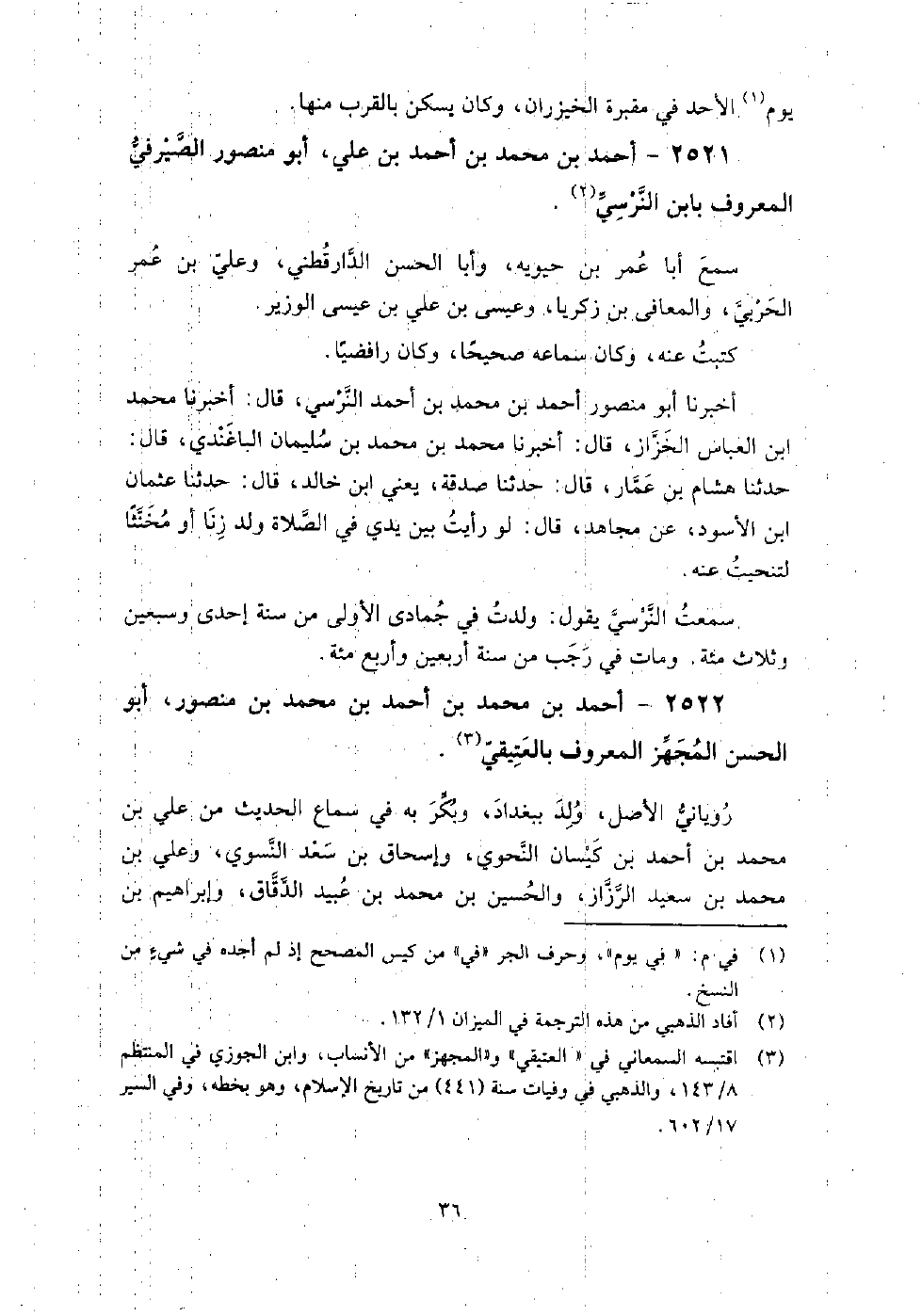 2522 - أَحْمَد بْن مُحَمَّد بْن أَحْمَد بْن مُحَمَّد بْن منصور أَبُو الحسن المجهز المعروف بالعتيقي