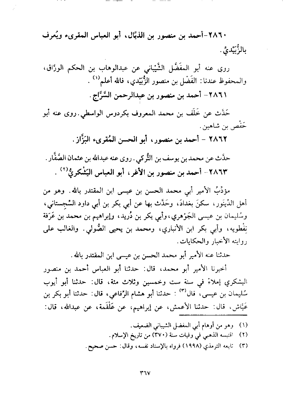 2862 - أَحْمَد بْن منصور أَبُو الْحَسَن المقرئ البزاز حدث عَن مُحَمَّد بْن يُوسُف بْن التركي روى عنه عَبْد اللَّهِ بْن عثمان الصفار