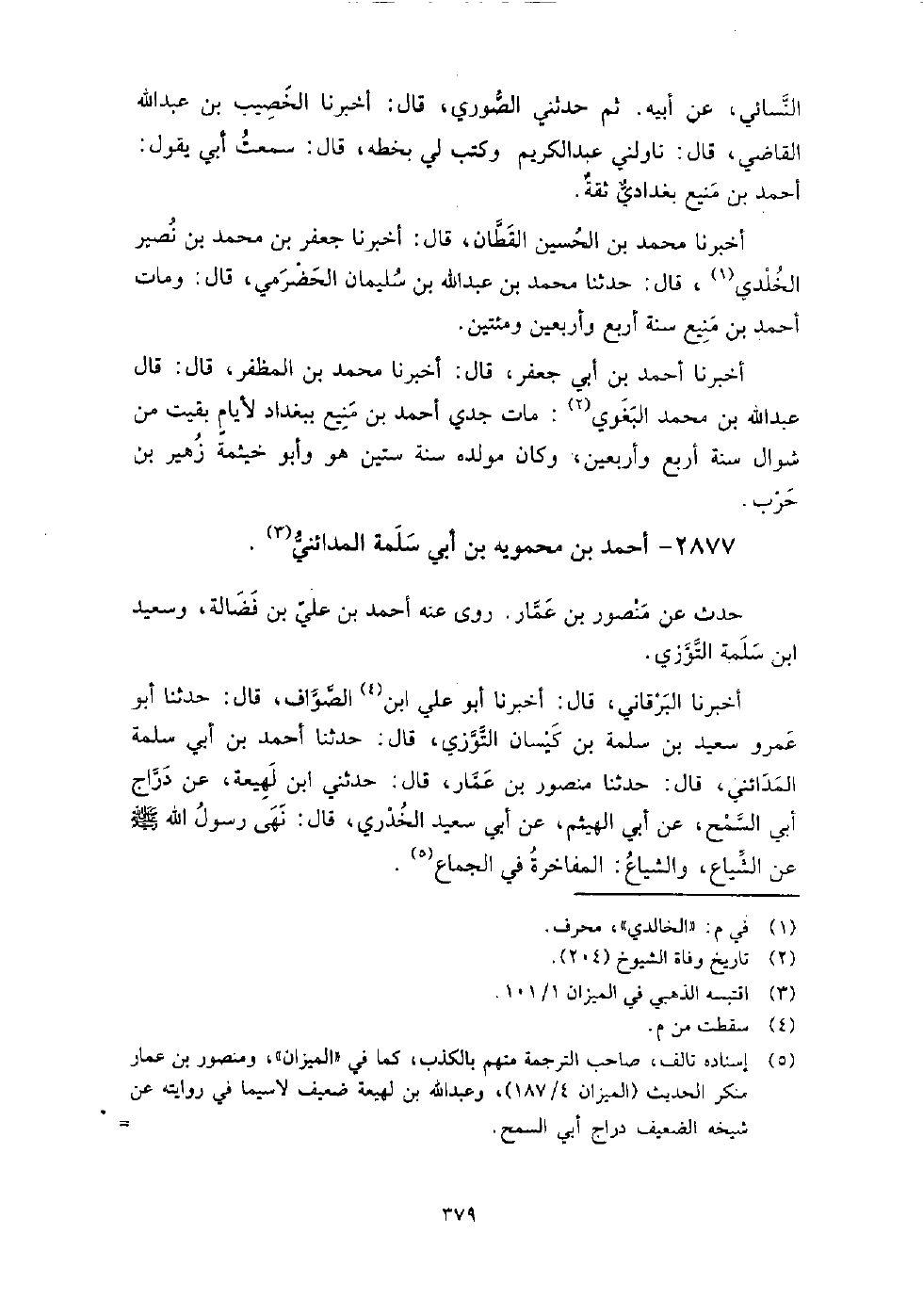 2877 - أَحْمَد بْن محمويه بْن أَبِي سلمة المدائني حدث عَن منصور بْن عمار، روى عنه: أَحْمَد بْن عَلِيّ بْن فضالة، وسعيد بْن سلمة التوزي.