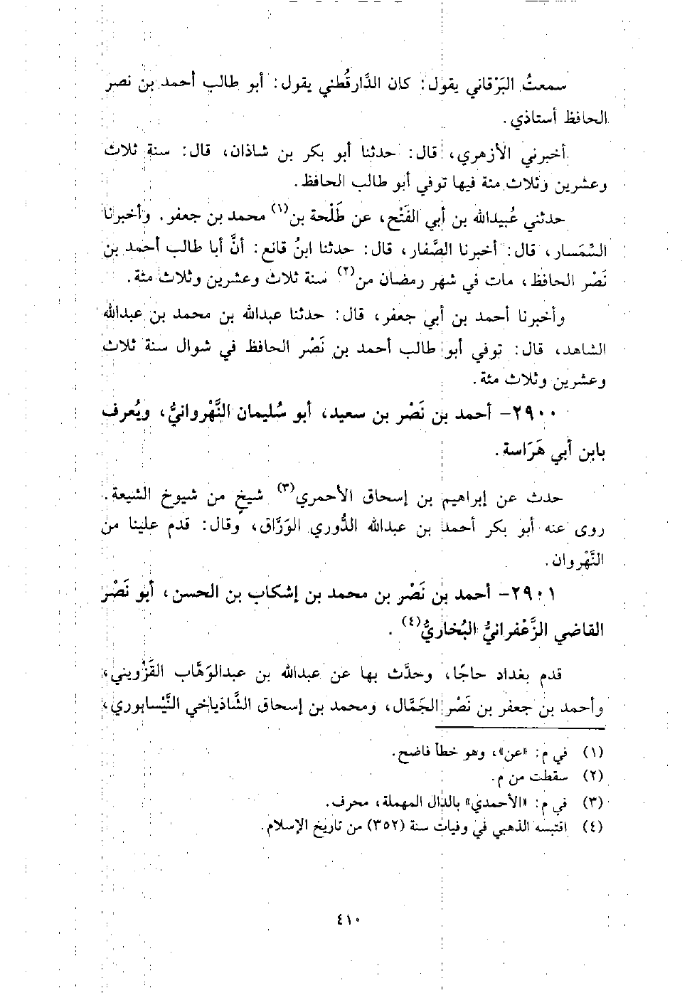2900 - أَحْمَد بْن نصر بْن سَعِيد أَبُو سُلَيْمَان النهرواني ويعرف بابن أَبِي هراسة حدث عَن إِبْرَاهِيم بْن إِسْحَاق الأحمري شيخ من شيوخ الشيعة.