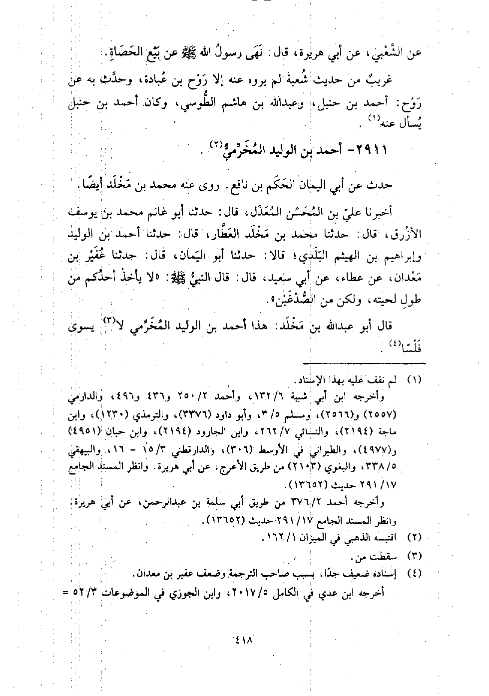 2911 - أَحْمَد بْن الوليد المخرمي حدث عَن أَبِي اليمان الحكم بْن نافع، روى عنه: مُحَمَّد بْن مخلد أيضا.