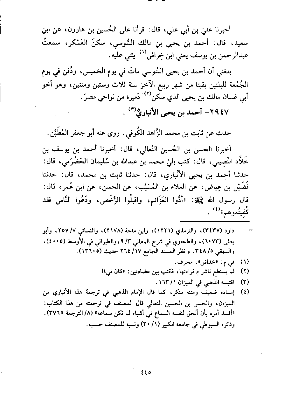 2947 - أَحْمَد بْن يَحْيَى الأنباري حدث عَن ثابت بْن مُحَمَّد الزاهد الكوفِي، روى عنه: أَبُو جَعْفَر المطين.