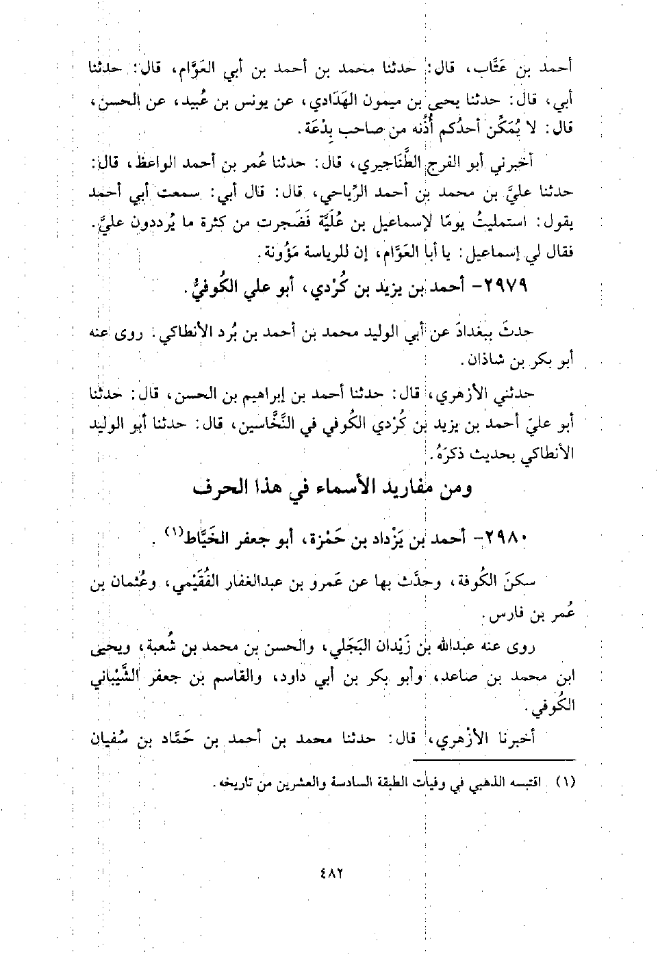 2980 - أَحْمَد بْن يزداذ بْن حمزة أَبُو جَعْفَر الخياط سكن الكوفة، وحدث بِهَا عَن عمرو بْن عَبْد الغفار الفقيمي، وعثمان بْن عُمَر بْن فارس.