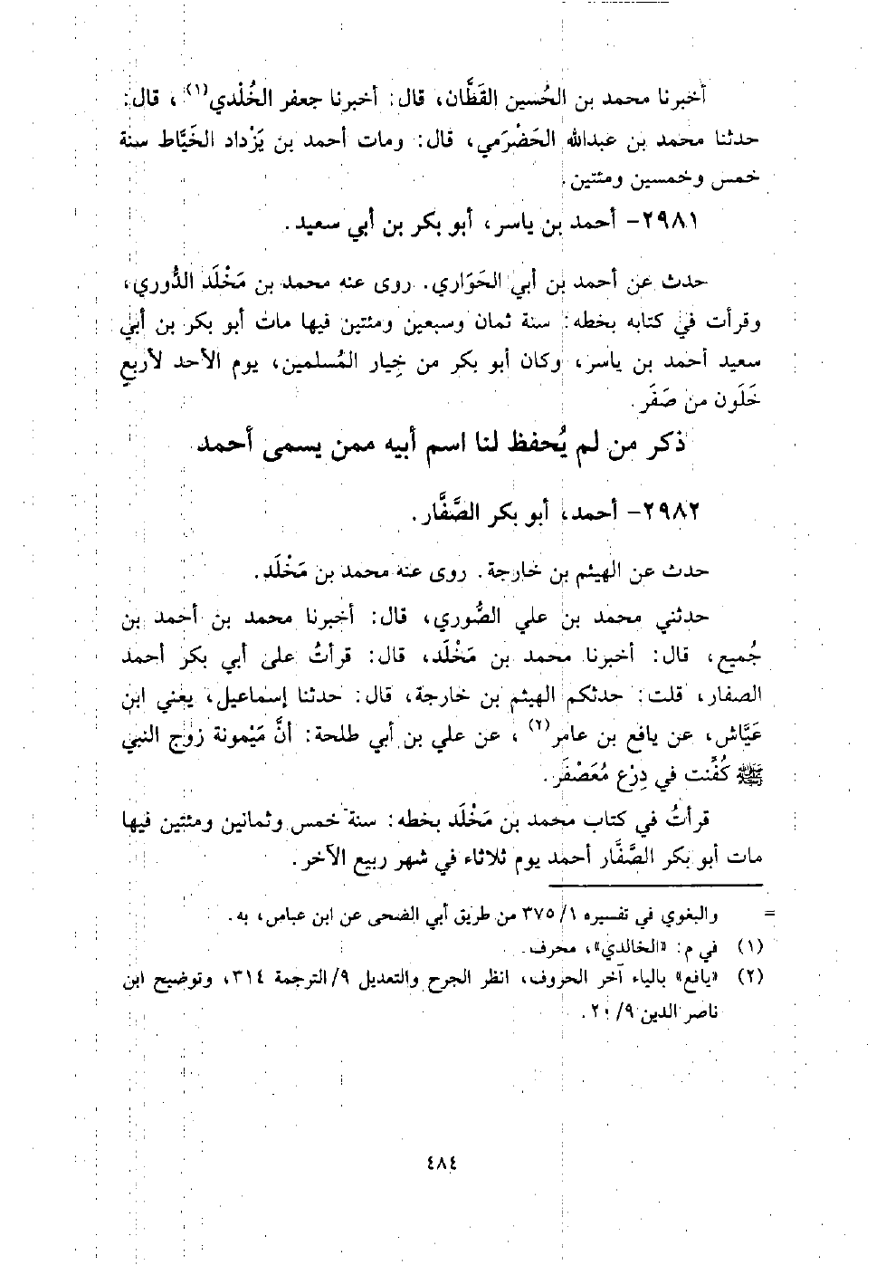 ذكر من لم يحفظ لنا اسم أَبِيهِ ممن يسمى أَحْمَد